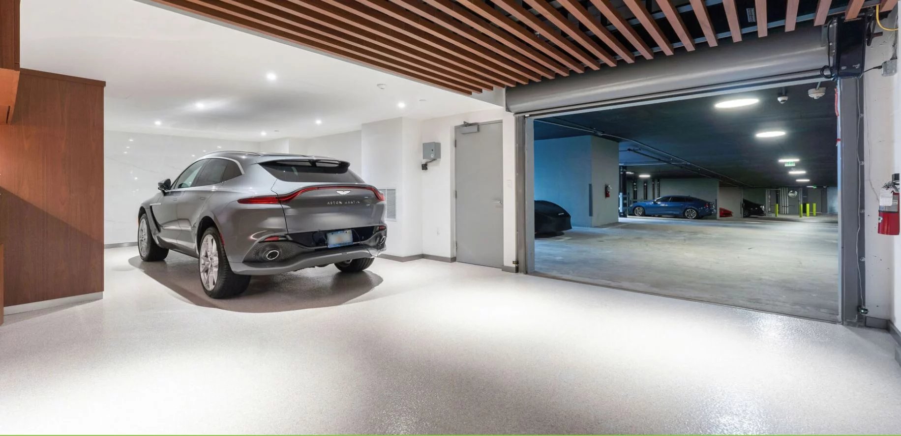 Private parking is provided within the exclusive Aston Martin Imagined Garage,