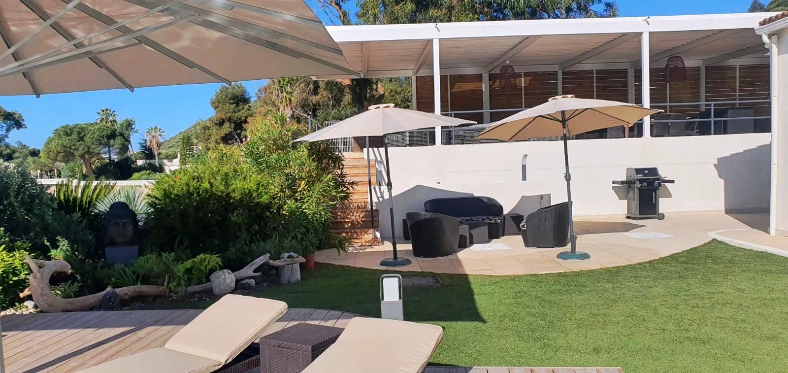 La villa propose des prestations en adéquation avec son standing : climatisation, cheminée, double vitrage, portail électrique, arrosage automatique, éclairage extérieur et système d’alarme. Les matériaux ont été sélectionnés avec soin afin d’offrir un cadre élégant et durable. La propriété est proposée meublée, permettant une installation immédiate dans un environnement parfaitement entretenu.