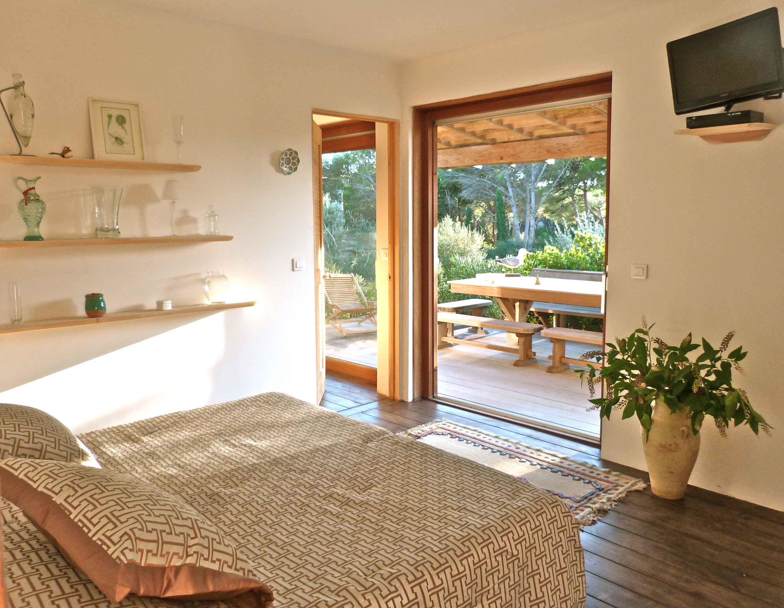 2,530 m² plot forms a particularly well-maintained green setting. Developed on the former orchard of the Ciappili farm, it combines olive trees, bougainvillea, mastic trees, mimosas, laurels and even a small Cabernet-Sauvignon , giving the property a true landscape dimension.
