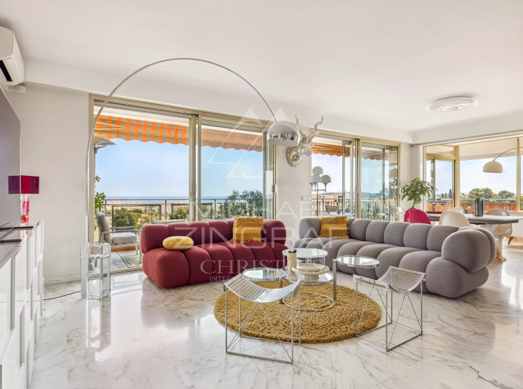 Offering a 180° sea view, this 250 m² penthouse benefits from a private swimming pool on the terrace, a high-end equipped kitchen and integrated home automation.