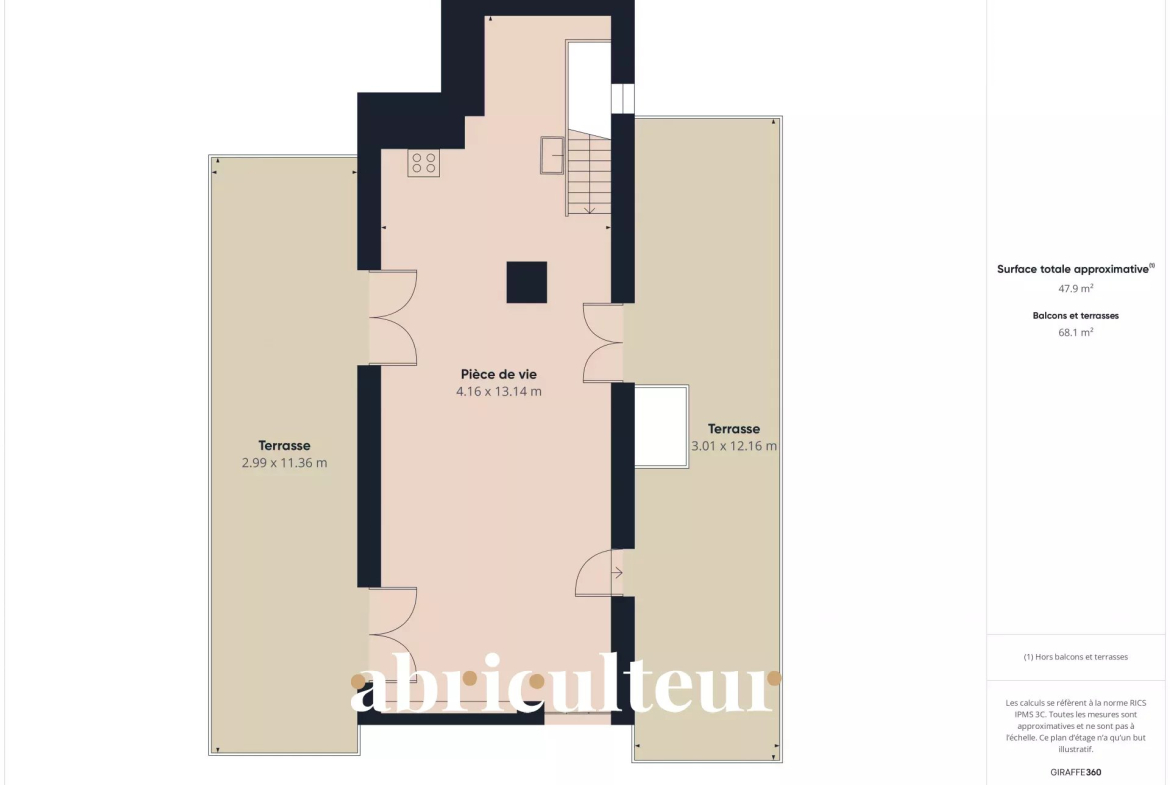 Discover this beautiful 101 m² duplex apartment on the 5th and 6th (top) floors of a building constructed in 2021 (located on Rue Basly), offering 71 m² of rooftop terraces. The entire apartment was designed and furnished in 2022 by an architect, providing a spacious and modern living environment.