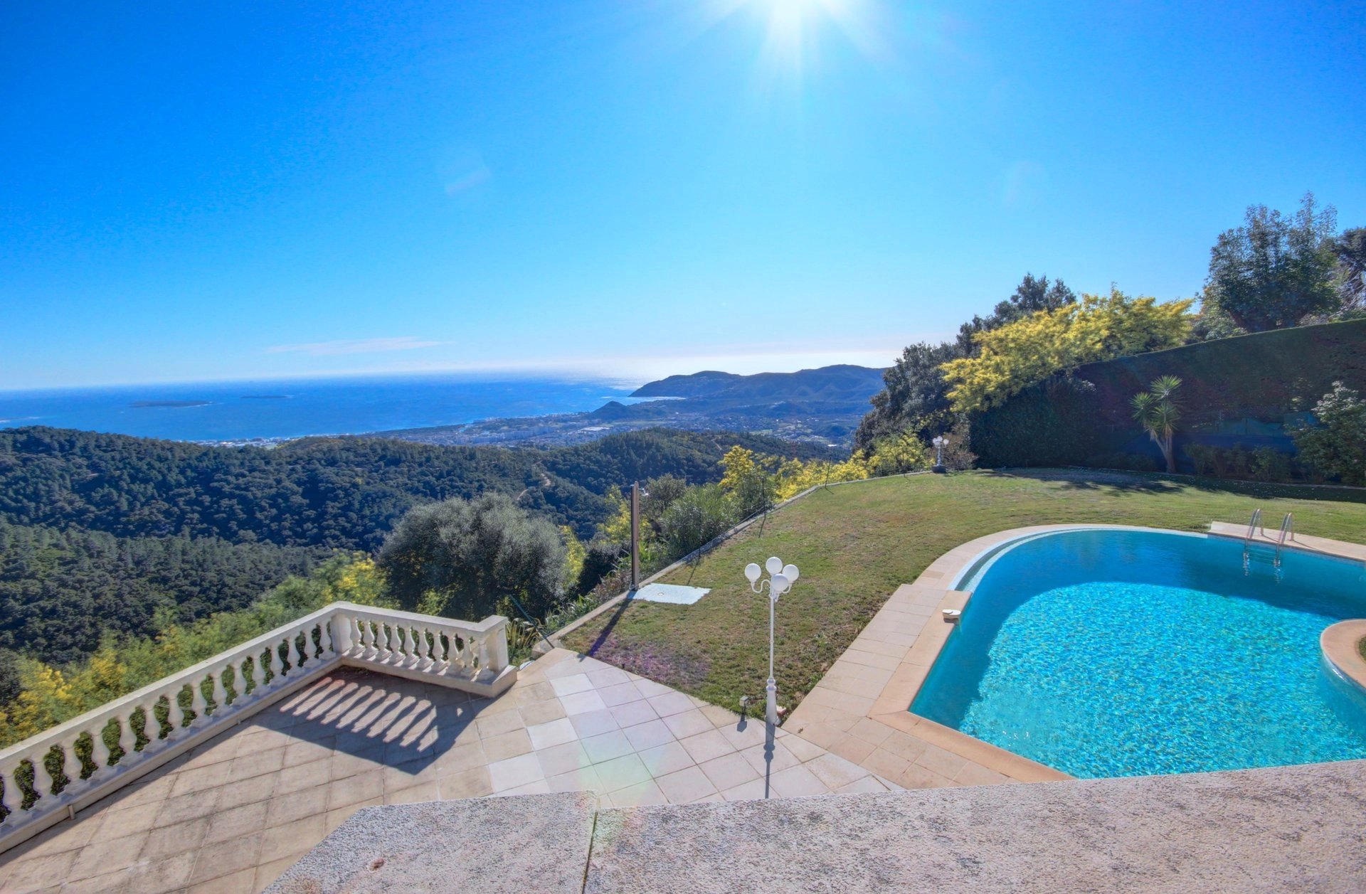 In a very quiet location, enjoying breathtaking panoramic views of the sea and the Lérins Islands.