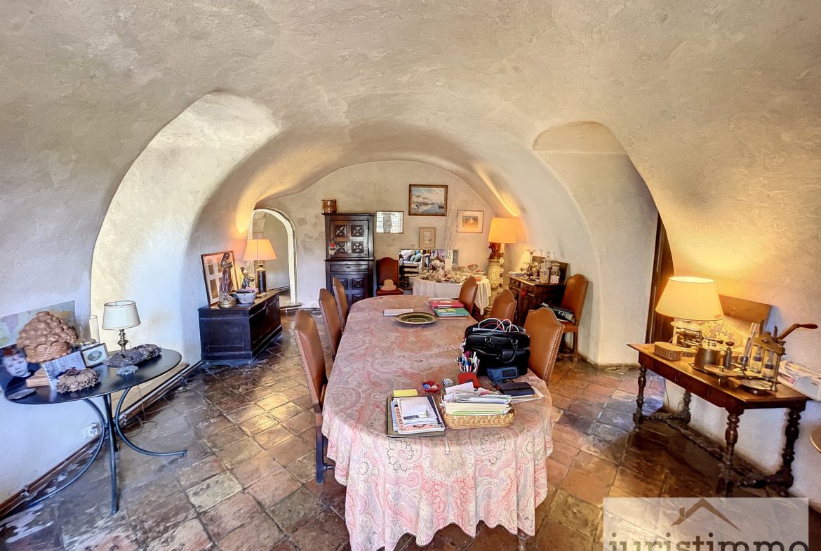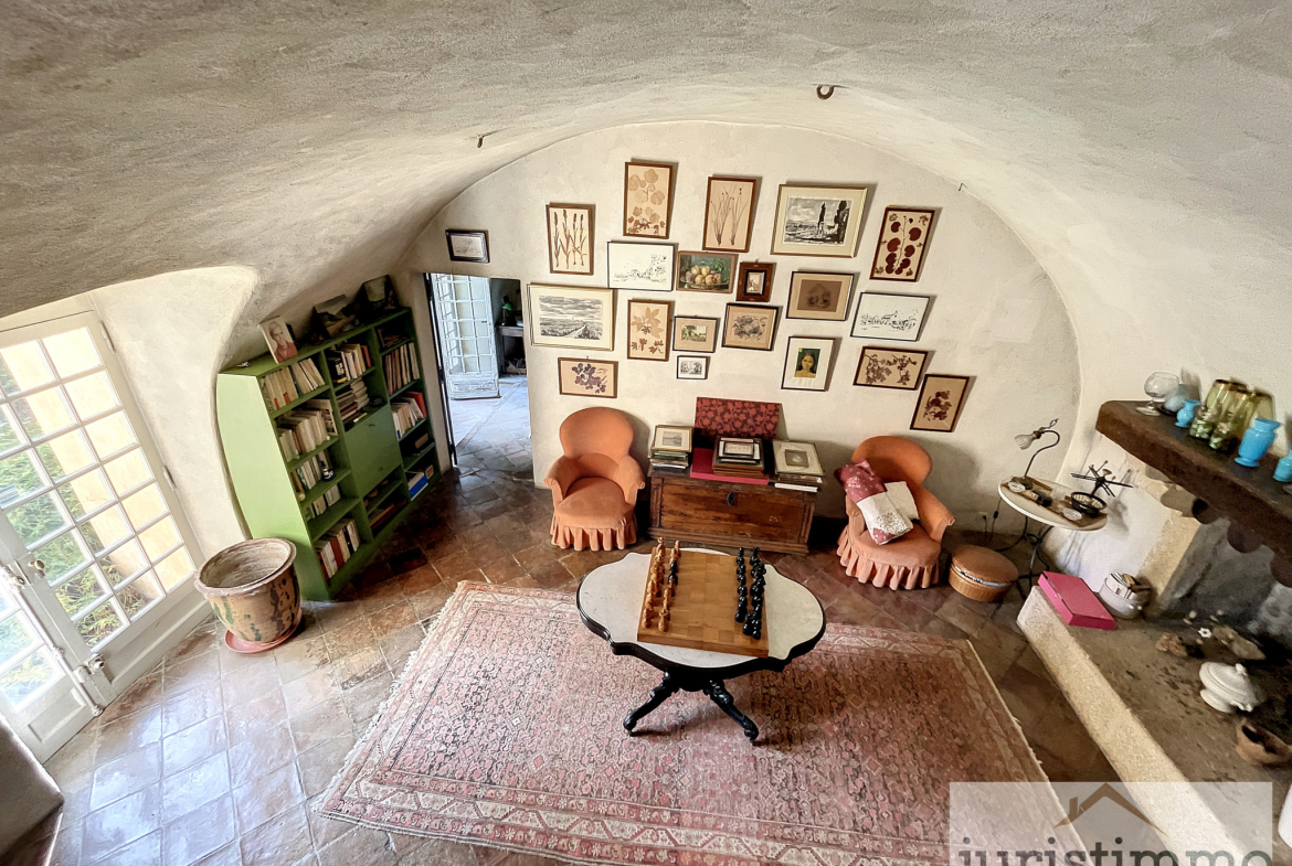 The noble section spans three levels and features seven large bedrooms. On the ground floor, you will be welcomed by a majestic entrance hall leading on one side to a double living room with an impressive fireplace, a small sitting room, an office, and a cellar, and on the other side, a spacious dining room opening onto a terrace, a separate kitchen, a laundry room, and a boiler room.