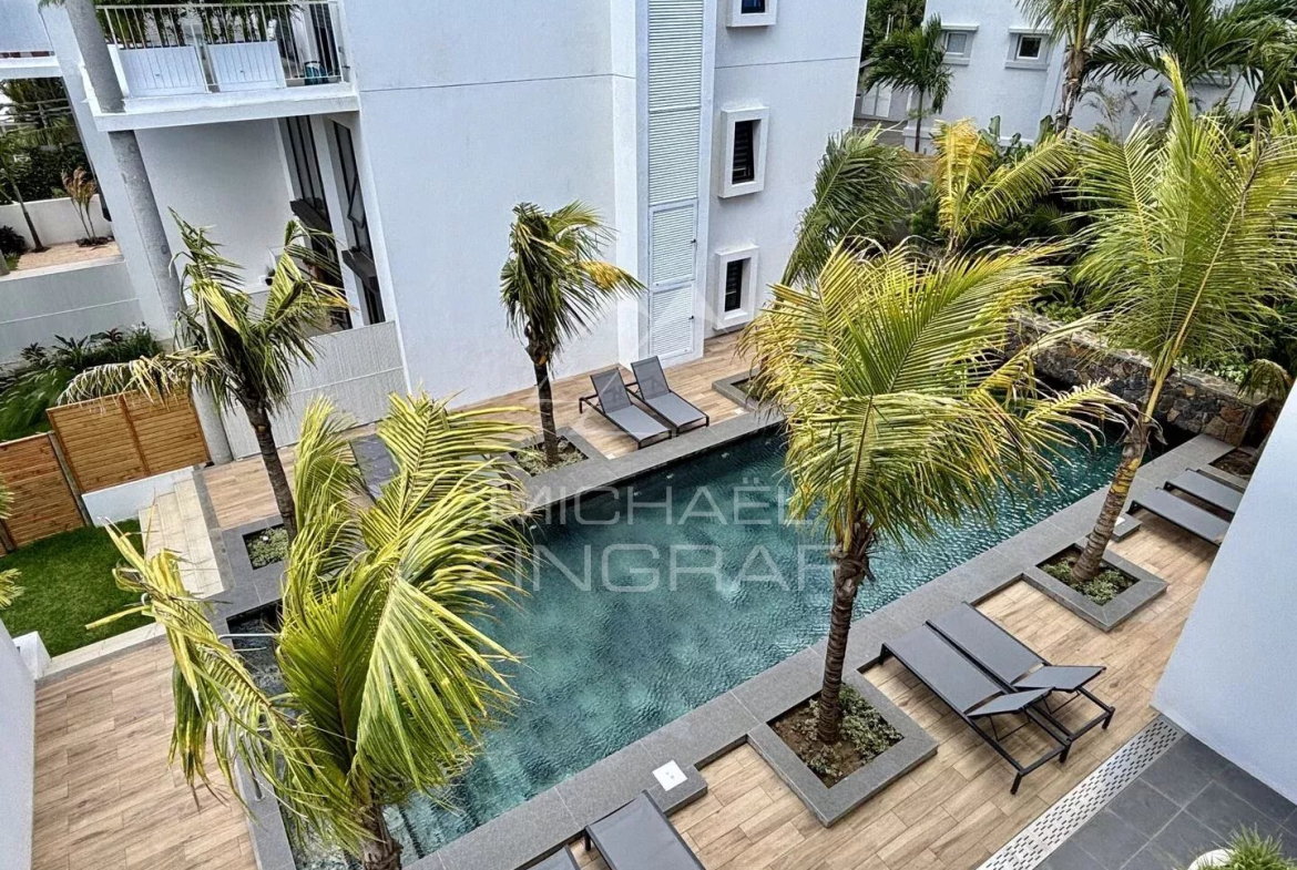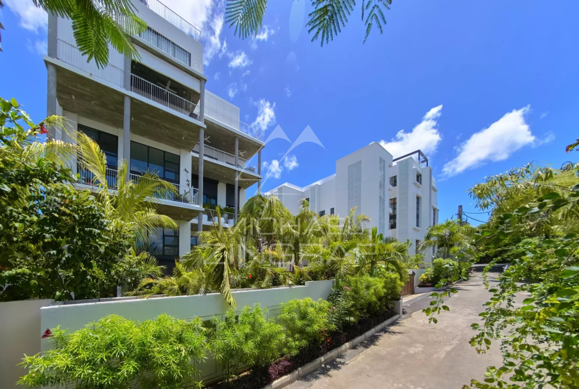 Located in the prestigious Marine residence on the coastal road in Pointe aux Canonniers, this magnificent garden-level duplex offers an exceptional living environment in the heart of one of the most sought-after areas in the north of the island.