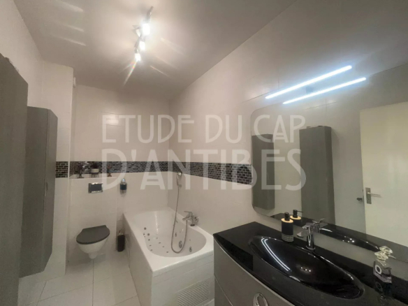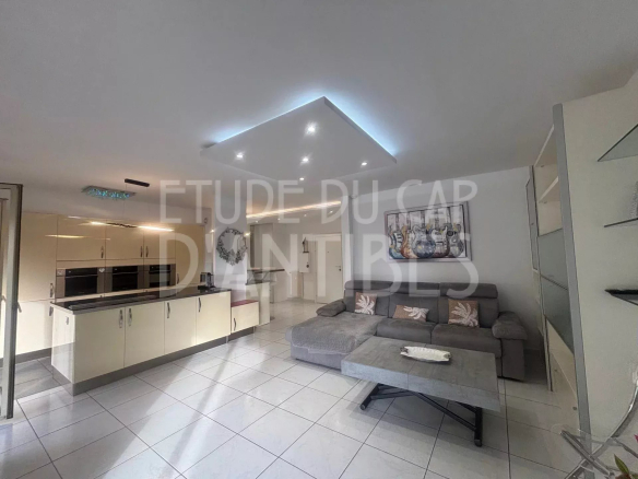 Between the beaches of Antibes and Juan-les-Pins, this bright, west-facing apartment offers over 85 square meters of living space. It comprises a fully equipped kitchen opening onto a spacious living room, two bedrooms, a bathroom and a shower room, and dressing rooms.