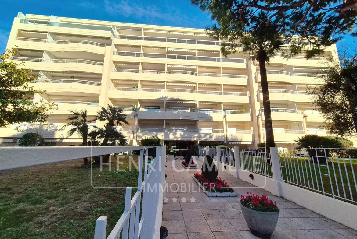 Just a 5-minute walk from Rue d'Antibes and the famous Croisette beaches, on the top floor of a secure, modern residence with a swimming pool, this beautiful 76.4 sq m (Carrez Law) 2-bedroom apartment features a living room and kitchen opening onto a 15 sq m southwest-facing terrace, two bedrooms with built-in wardrobes, a bathroom with toilet, a shower room, and a guest toilet. The bright apartment is equipped with air conditioning and comes with a double garage. A rare find in the heart of the city!