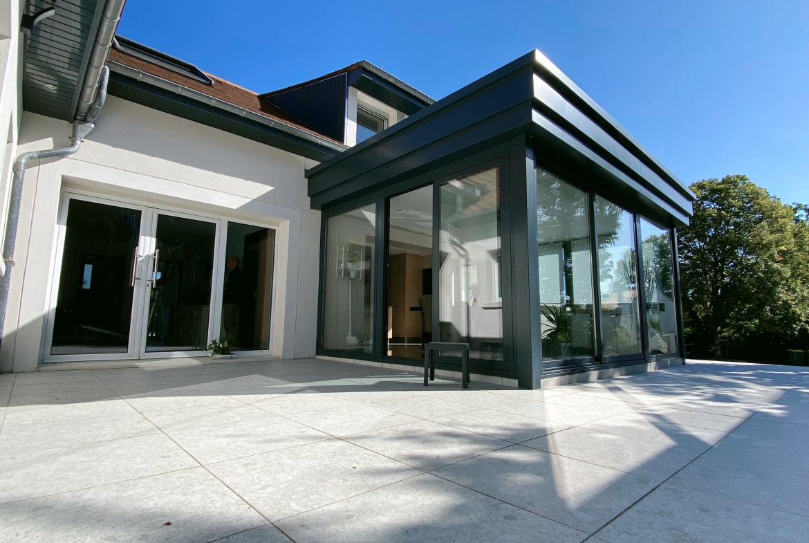 Fitted and equipped kitchen, opening onto an aluminum and glass extension (very bright)