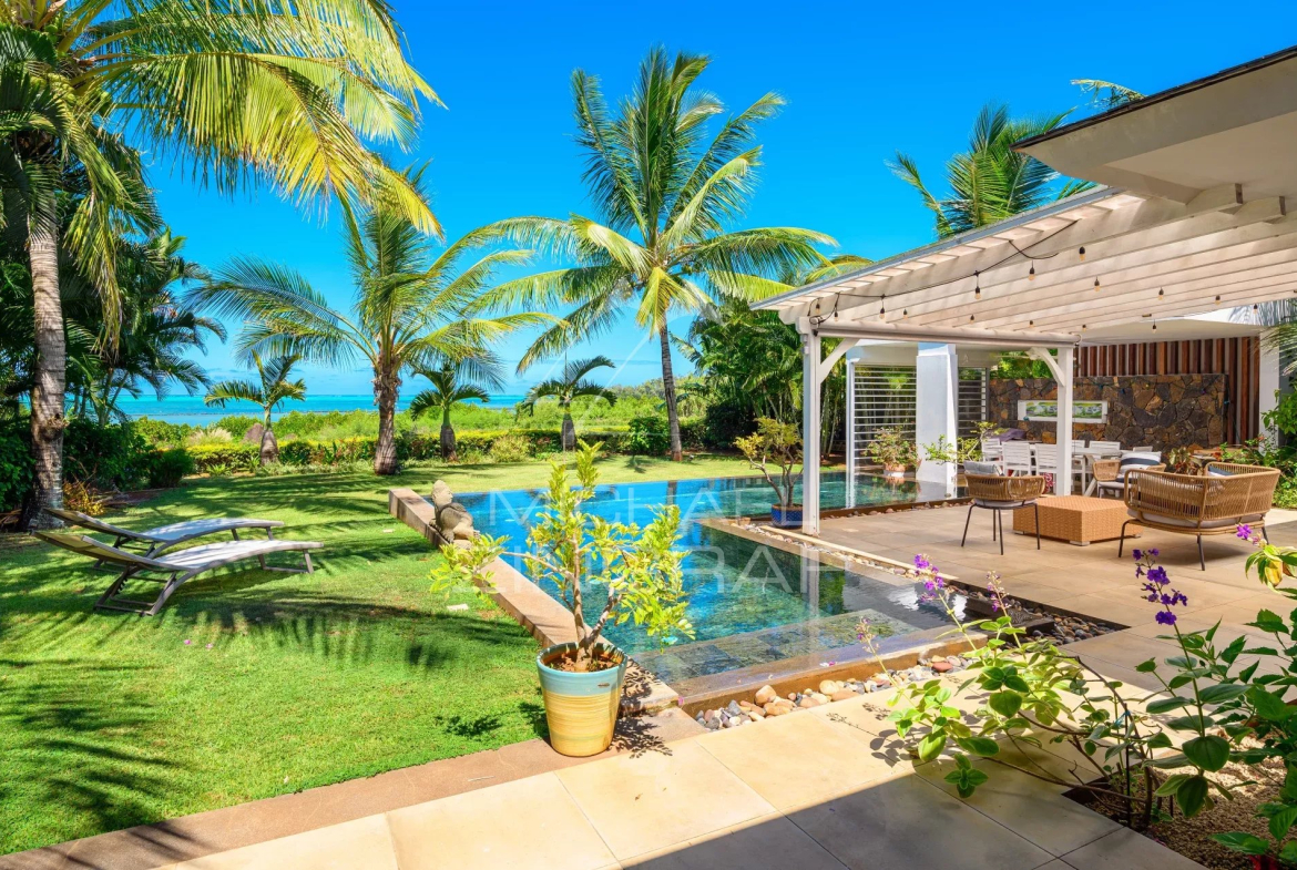 This freehold villa enjoys a rare beachfront location, offering unobstructed and tranquil views of the lagoon. Outside, a private pool and a large covered terrace invite you to fully enjoy the tropical climate and the beauty of the landscape every day.