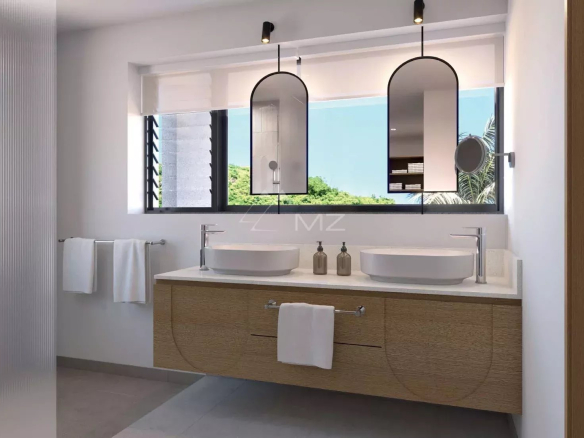 Ideally located in the most sought-after area of Rivière Noire and Tamarin, Blue Vista is sure to please. The west coast abounds with activities: diving with whales and dolphins, kitesurfing, sailing, hiking… not to mention the five golf courses nearby. Blue Vista is also within easy reach of the Ruisseau Créole shopping center with its boutiques, restaurants, and services.
