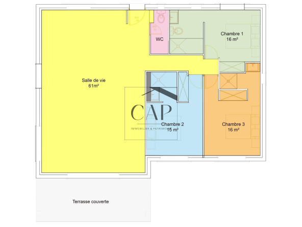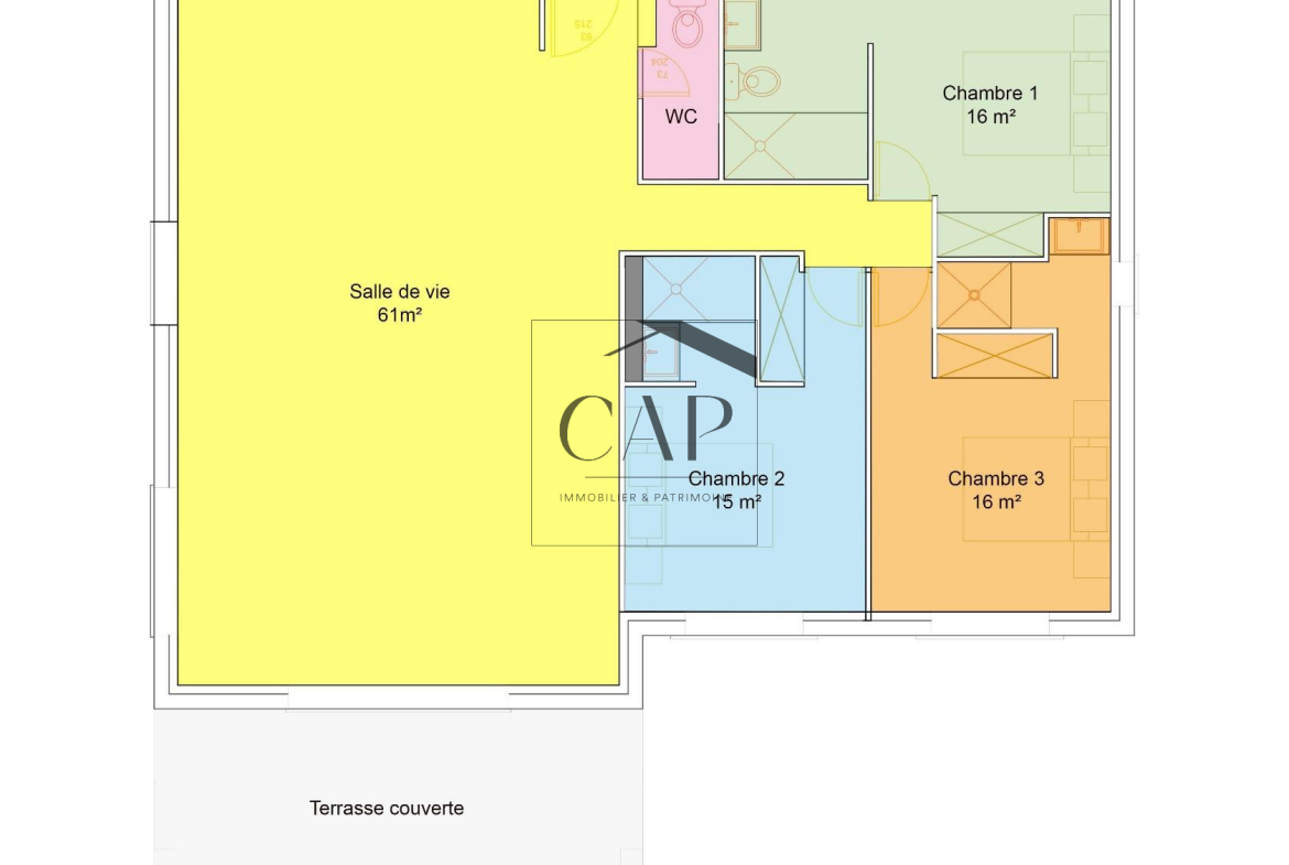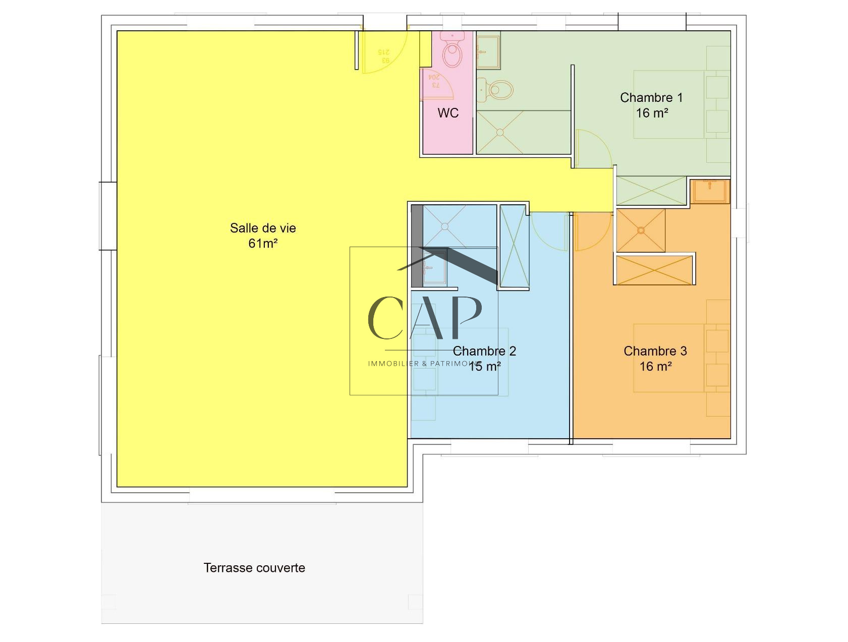 The villa consists of a large, bright living room with an open-plan fitted kitchen, ideal for sharing friendly moments. Night side: three large bedrooms of 15 to 16 m2, each with a private bathroom, completed by a separate toilet.