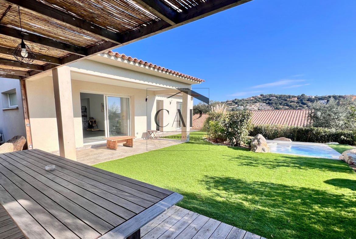 CAP Immobilier & Patrimoine offers you a detached 4-room villa of 109 m2, facing south, with a private swimming pool, on a landscaped plot of 558 m2.