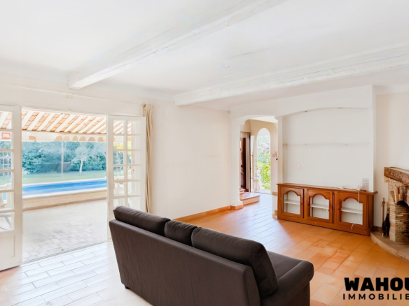The exterior has been designed to take full advantage of the Mediterranean climate, with a large covered summer terrace opening onto a recently renovated swimming pool equipped with a new salt filtration system. Two large garages with automatic doors complete the property.