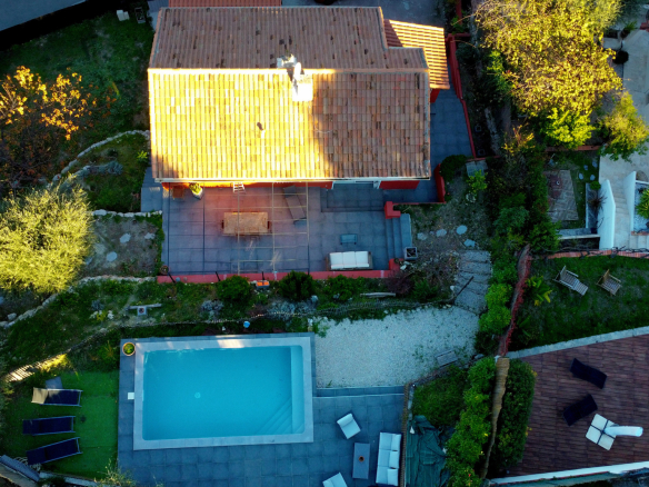 Attractive 900 m² plot with private swimming pool, terraces, and landscaped garden.