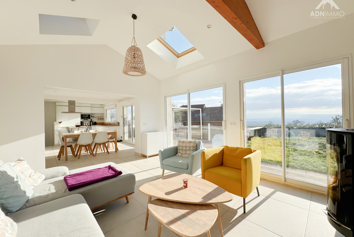 ADN Immo agency presents this superb detached house of 183 m² in the town of Péron. Recently built, it comprises a spacious and bright living area including a fully equipped open-plan kitchen, 5 bedrooms including a master suite, 2 shower rooms, and 2 WCs. In addition, there is a 55 m² games room/cinema room, a large south-facing terrace with unobstructed views, and a heated swimming pool.