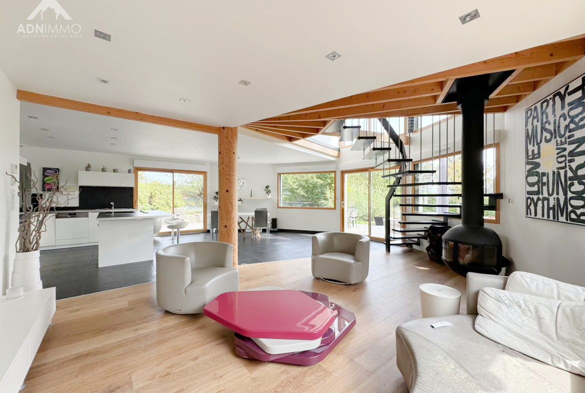 The ADN Immo agency offers you this superb detached house of 230 m2 (166 m2 living space) in the town of Crozet. Built on a plot of 900 m2, it includes a vast, bright living space including a fully equipped open kitchen, 4 spacious bedrooms including 2 suites, a mezzanine / office, 1 bathroom, 2 shower rooms and 4 toilets. In addition, a large south-facing terrace with unobstructed views, a garage and a double carport.