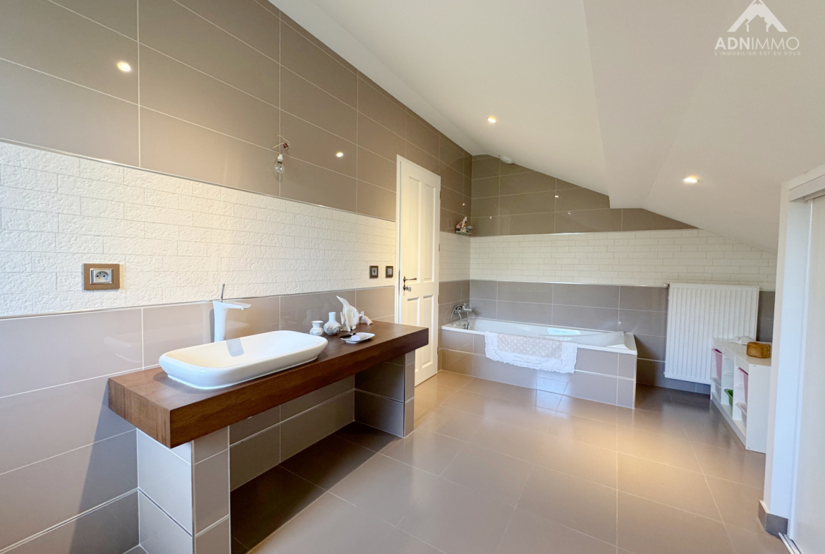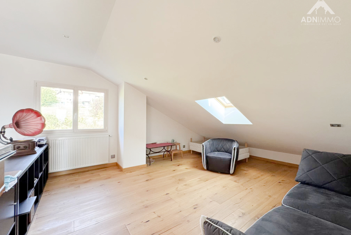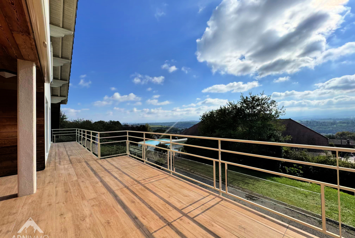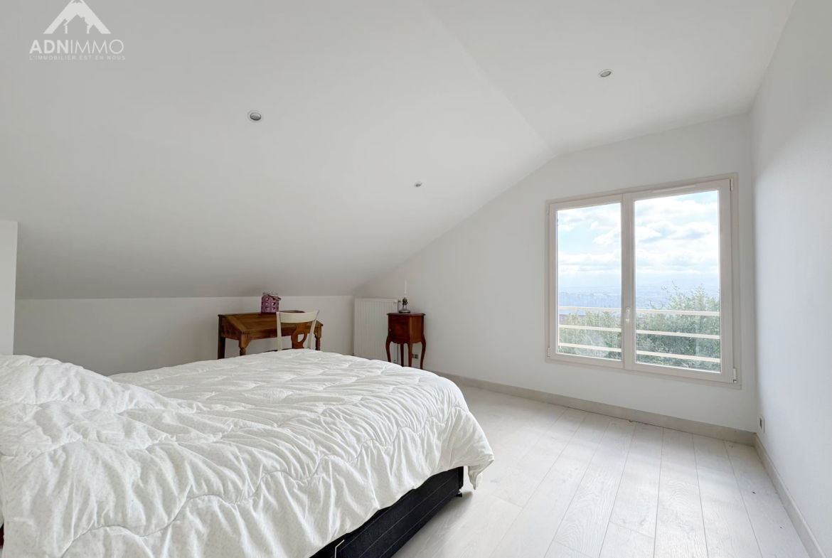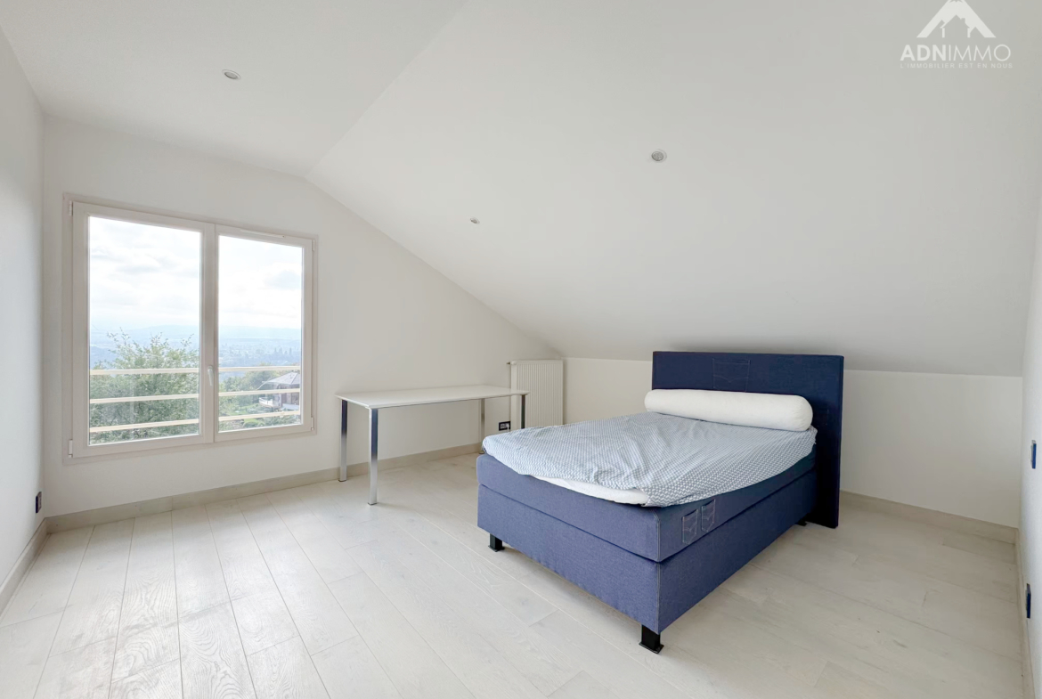 The ADN Immo agency offers you this very pretty detached house of 240 m2 (150 m2 living space) in the town of Challex. Completely renovated, it includes a large bright living space, a fully equipped kitchen, 5 spacious bedrooms, a mezzanine / office, 2 bathrooms, 1 shower room and 3 toilets. In addition, a large south-facing terrace offering a breathtaking view of Geneva, a full basement with gym, workshop and cellar, a carport and a heated swimming pool. Possibility of creating an apartment with independent entrance on the ground floor.