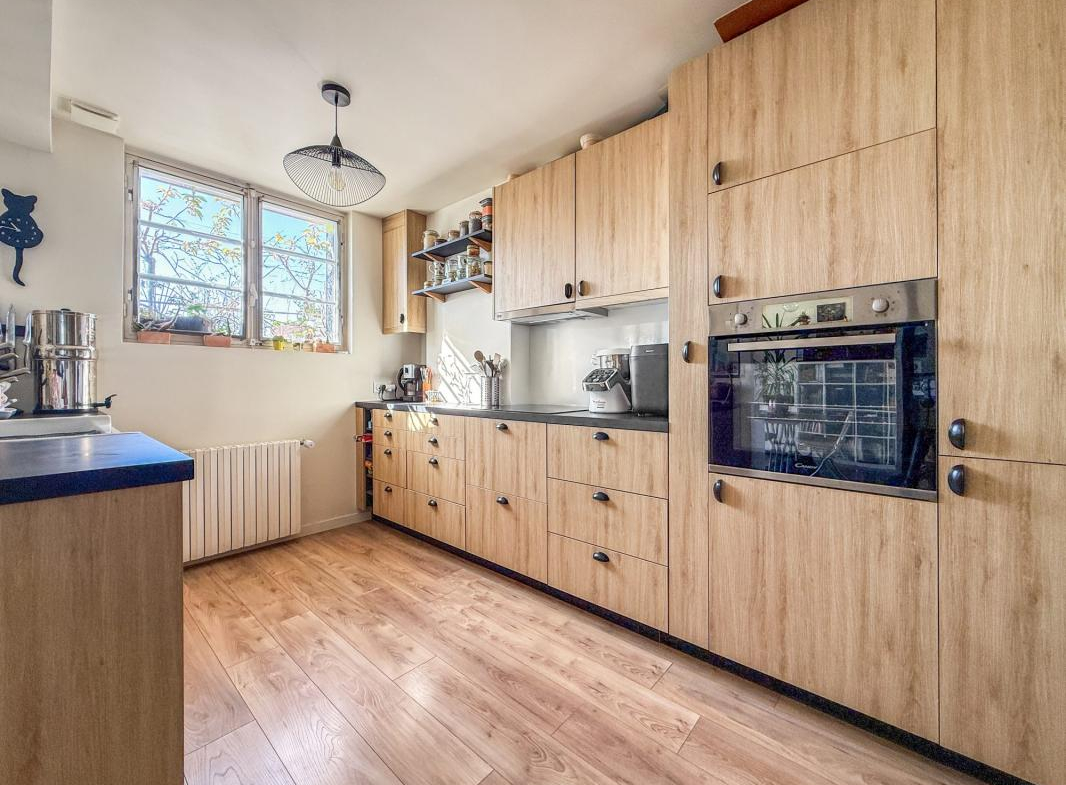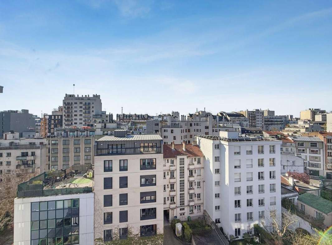 At 33 bis Boulevard Serrurier, discover a rare apartment in the Porte des Lilas area, offering tranquility, unobstructed views, and abundant natural light. This spacious 89.35 sq m (Carrez law) 3-bedroom apartment, fully renovated at the end of 2019, exudes serenity and boasts bright, airy rooms.