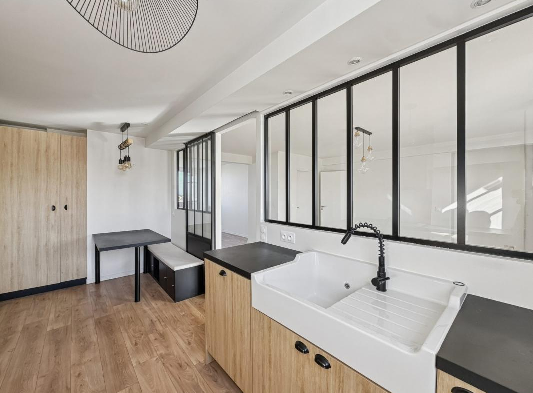 on the 9th floor with elevator access, this apartment benefits from a complete renovation, thermal and acoustic insulation, double glazing, central heating, and an energy performance certificate (DPE) rating of D. The well-maintained building requires no further work.