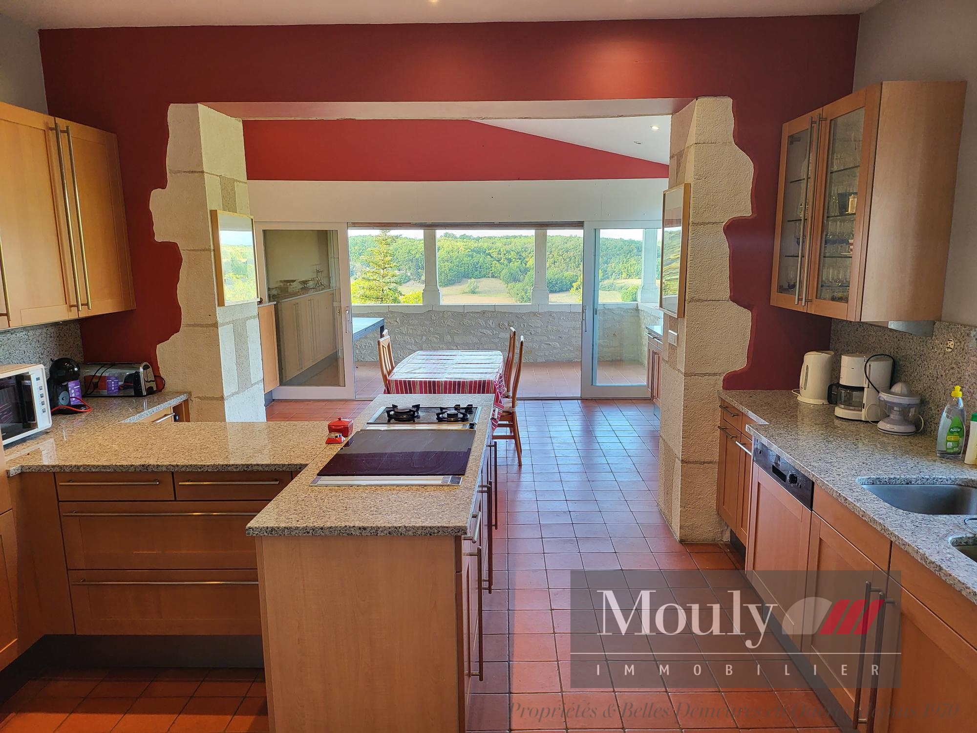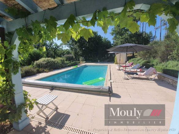EXTERIOR: – Below the kitchen, a large terrace to enjoy the view and the grounds – The swimming pool with a safety cover is located slightly away from the house and includes a pool house with shower and toilet.