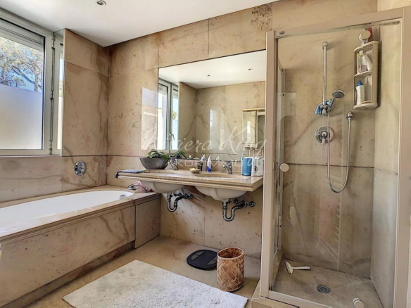 A 320 sq m villa on 3 levels with elevator, comprising a double living room with an 80 sq m office, a kitchen opening onto a large terrace overlooking the sea and the port of Nice, 4 bedrooms with en-suite bathrooms, 2 suites with dressing rooms.