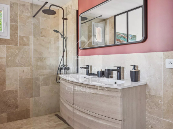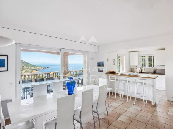 In the hills above Anthéor, within a private estate, boasting breathtaking sea and mountain views, this villa comprises two independent sections totaling approximately 287 sq m.