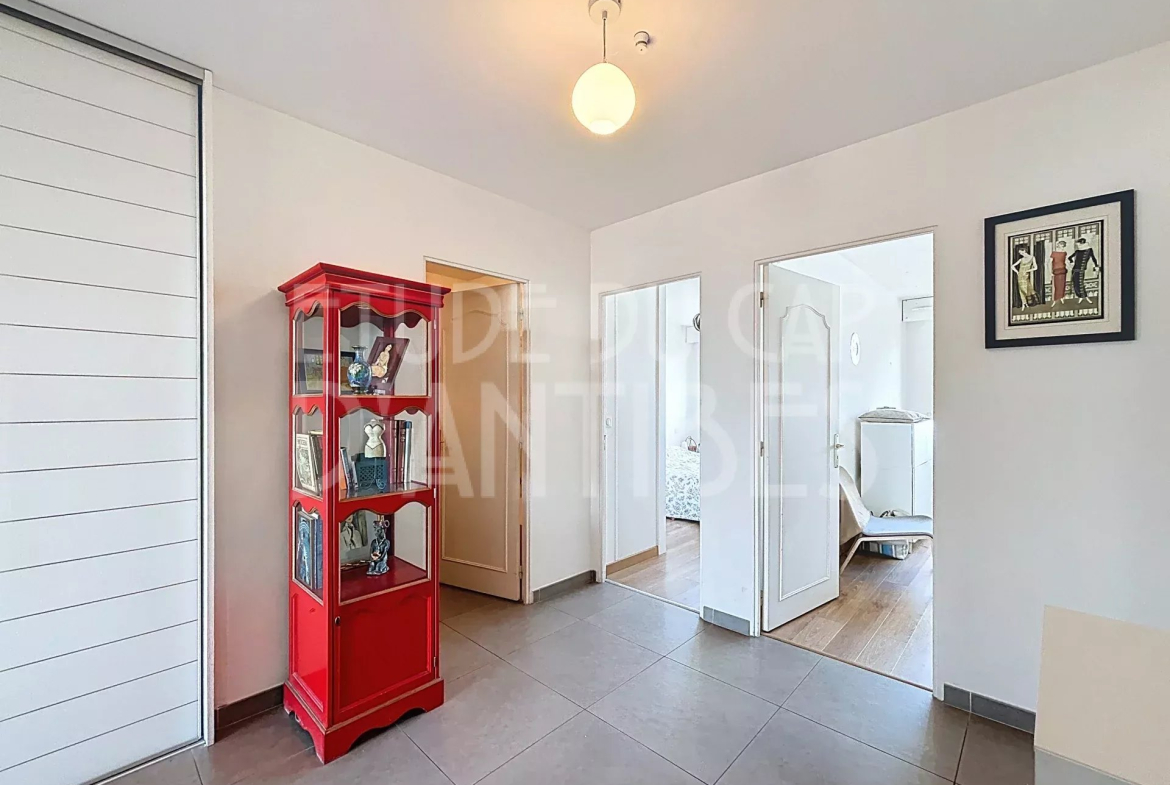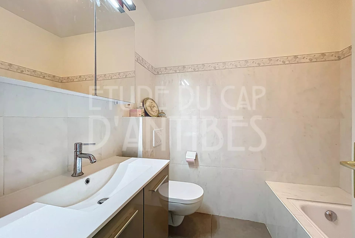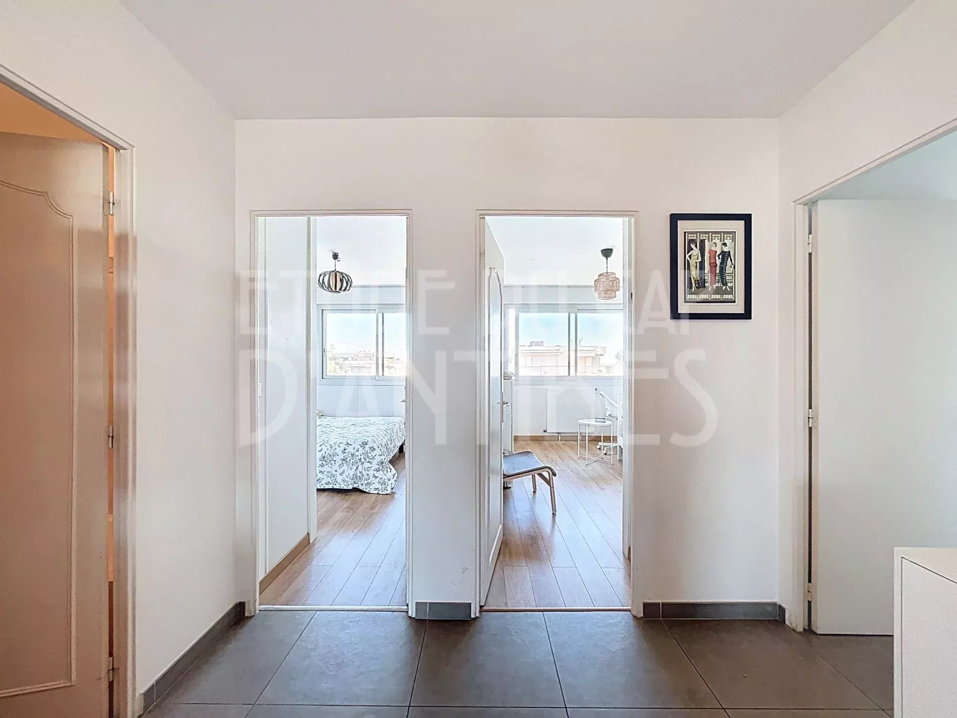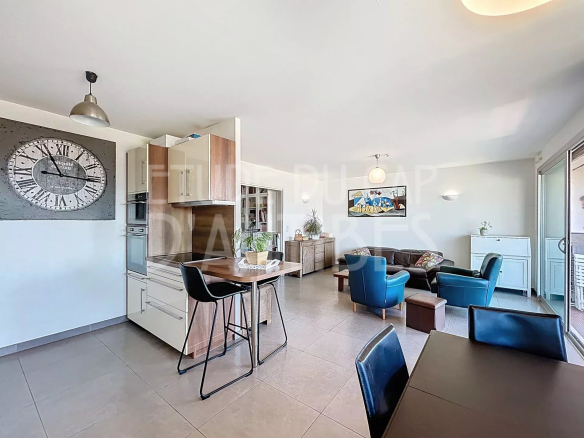 On the edge of Cap d'Antibes, near Rostagne and the Pinède, this superb 100 sq m (approx.) four-room apartment boasts a stunning sea view and a spacious entrance hall leading to a living room, dining room, and open-plan kitchen overlooking the sea. There are three bedrooms with storage, a shower room with WC, and a bathroom with WC.