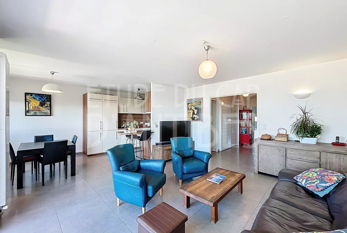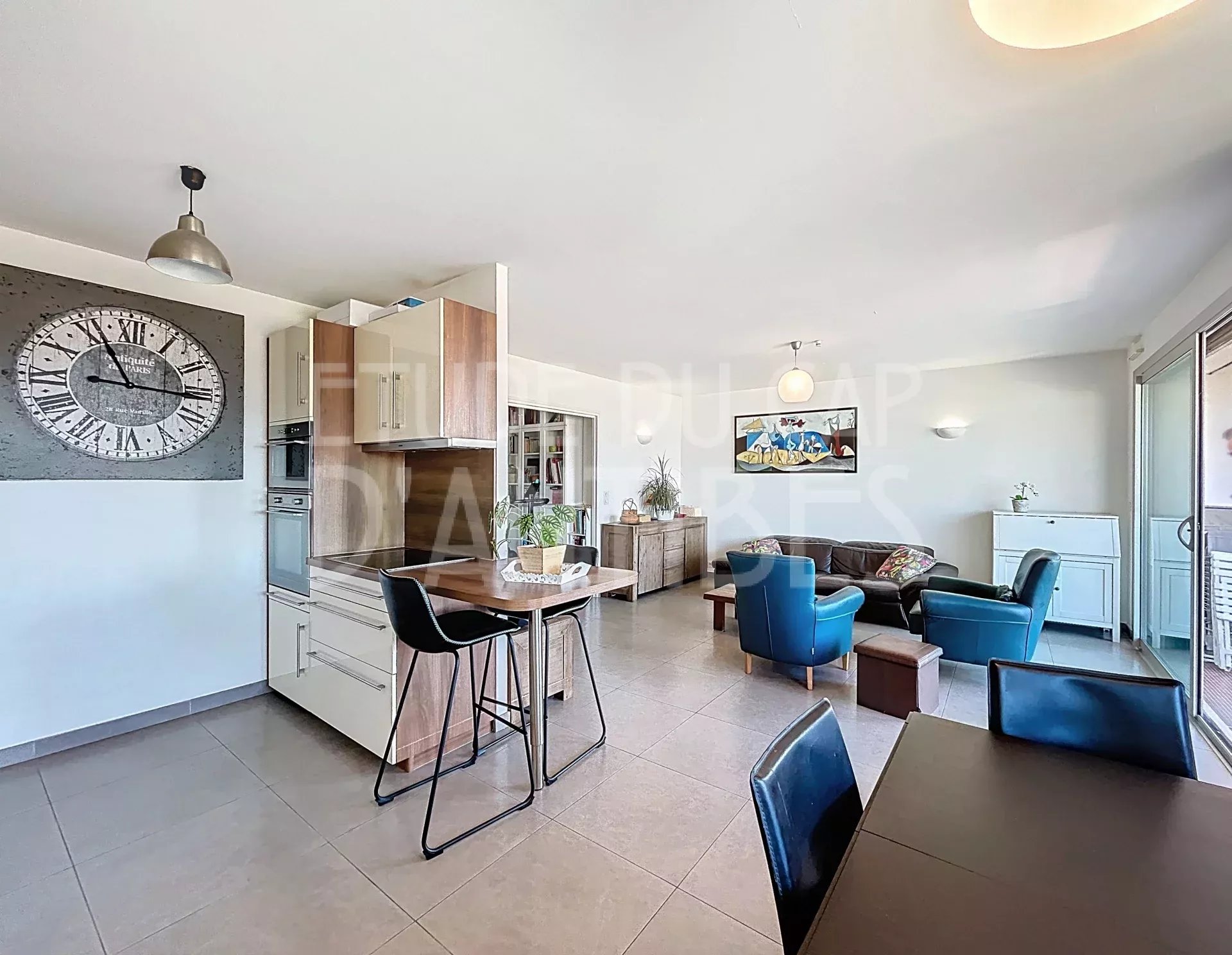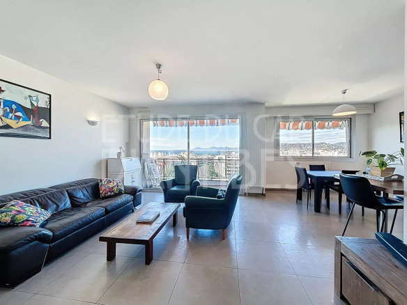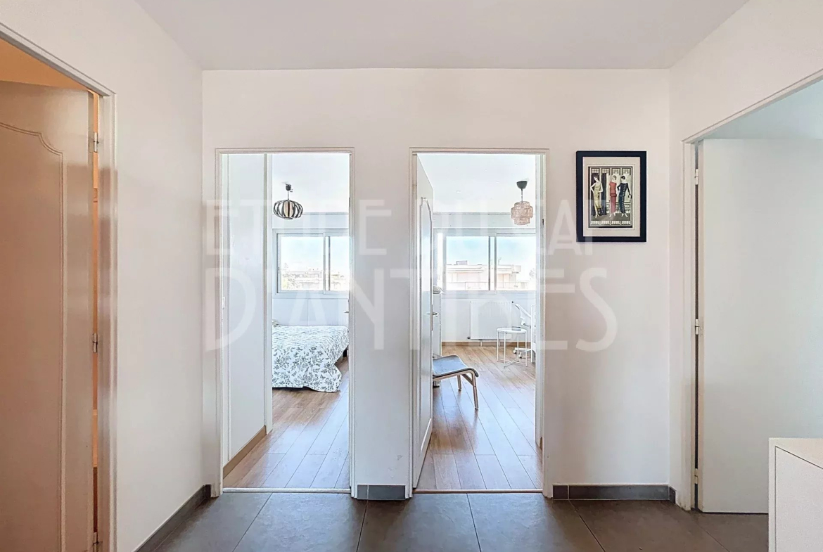 On the edge of Cap d'Antibes, near Rostagne and the Pinède, this superb 100 sq m (approx.) four-room apartment boasts a stunning sea view and a spacious entrance hall leading to a living room, dining room, and open-plan kitchen overlooking the sea. There are three bedrooms with storage, a shower room with WC, and a bathroom with WC.