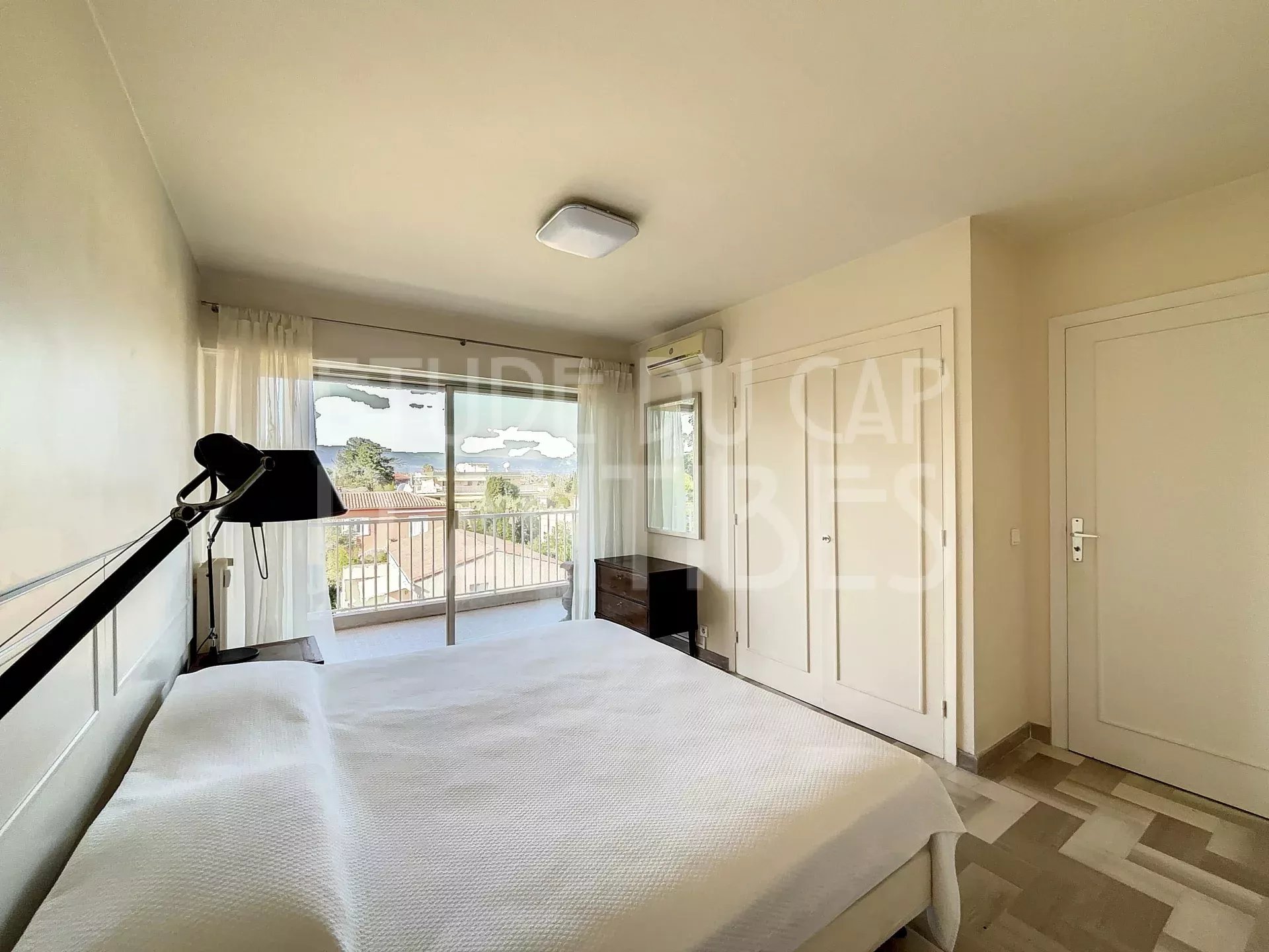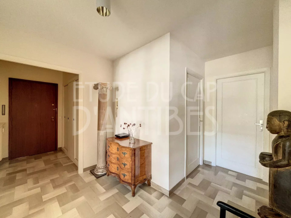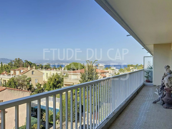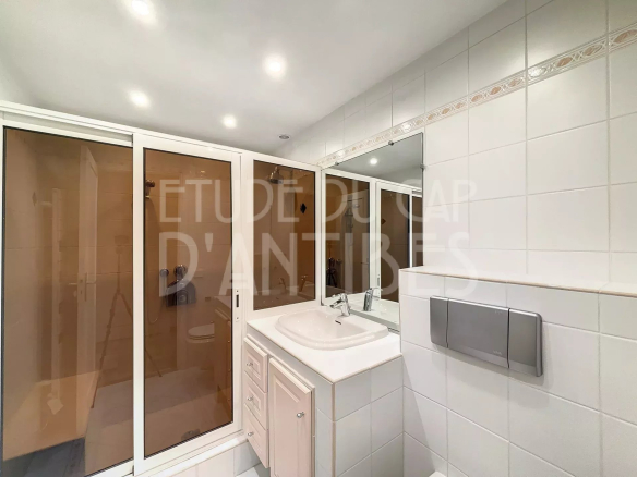 Three-room apartment on an upper floor with a spacious living room opening onto a large terrace, kitchen, two spacious bedrooms with terraces and sea views, and a shower room.
