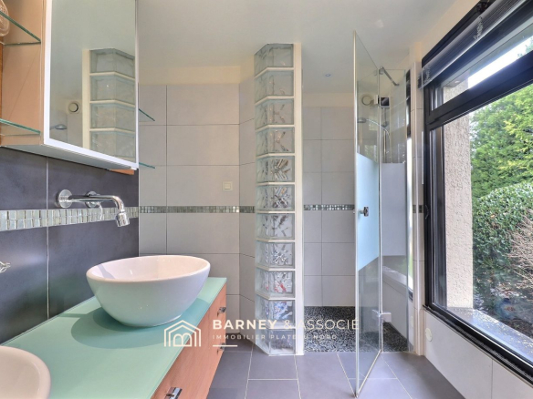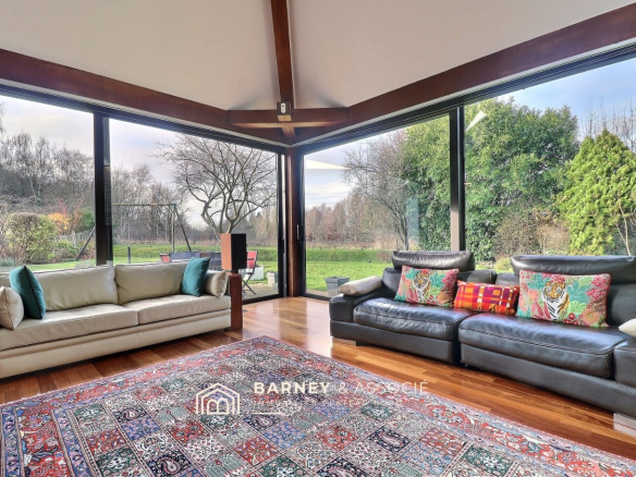 Nestled in a green setting, this architect-designed house of approximately 200 m² of floor space, including 180 m² of living space, offers a unique living environment with its country spirit, while remaining close to shops, schools and amenities.