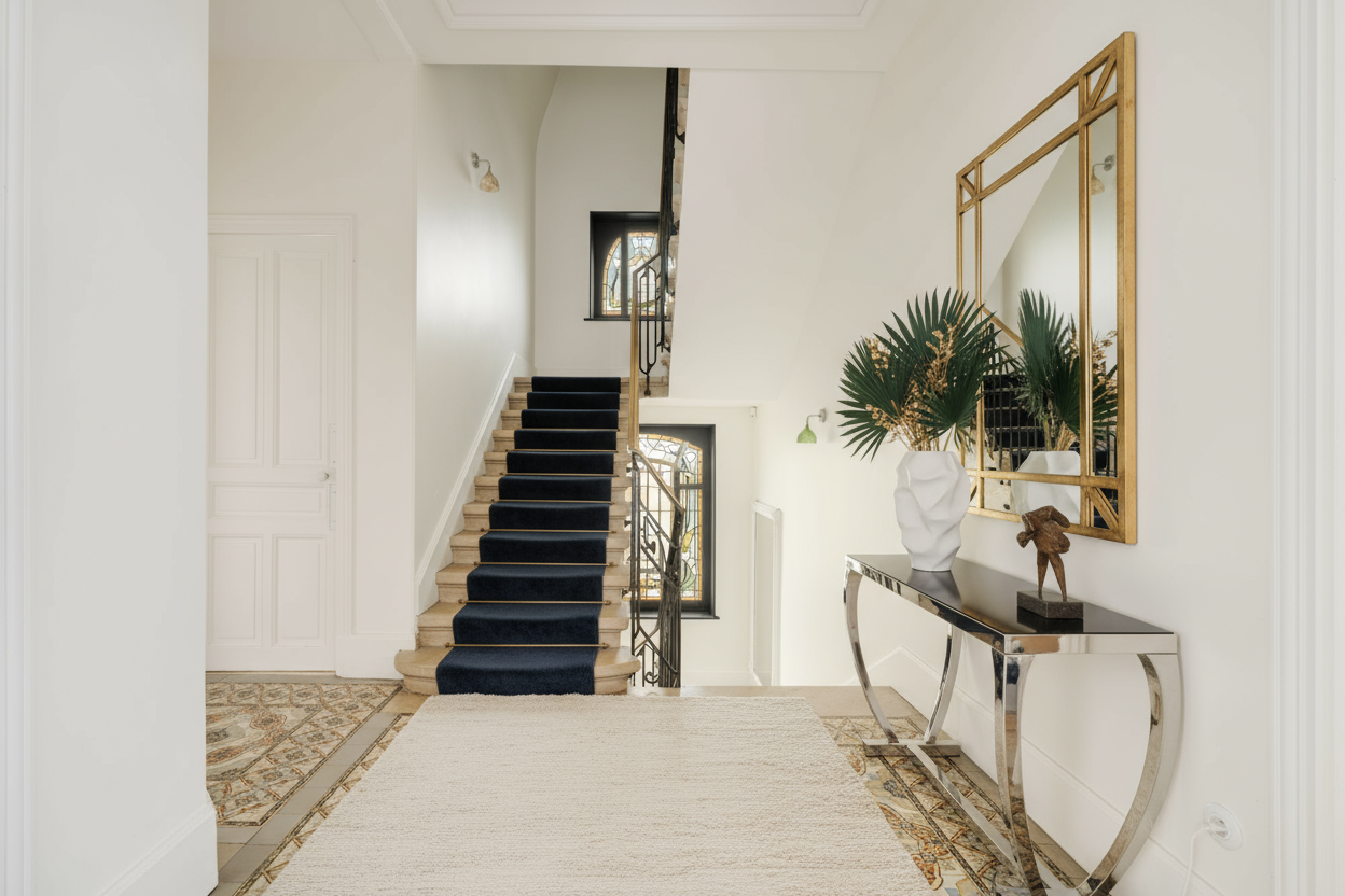 Built in 1912 by the architect Fernand César, this exceptional residence exemplifies the pinnacle of Art Nouveau in Nancy. It combines the talents of three major figures of the Nancy School: Fernand César for the architecture, Jacques Gruber for his stained-glass windows, and Eugène Vallin for his custom-carved woodwork. With a total floor area of 577 m², including 310 m² of living space, the house comprises 11 main rooms of generous proportions, several exceeding 20 m². It also features 7 bedrooms, 3 bathrooms, and a toilet on each floor, offering both comfort and functionality. The reception areas are enhanced by exceptional woodwork, numerous stained-glass windows by Gruber, and a glazed ceramic fireplace with floral motifs, typical of the Nancy School style. Situated on a 738 sq m plot, the property offers a wooded setting enhanced by a fishpond and inviting terraces. A rare and remarkable feature for a house of this period is its exceptional rooftop, a true open-air living space with unobstructed views of Nancy. Extensive cellars, outbuildings, several enclosed parking spaces, and a private parking area complete this exceptional property. More than just a residence, this manor house is a habitable work of art, designed for clients seeking exceptional value, heritage, and timeless beauty.