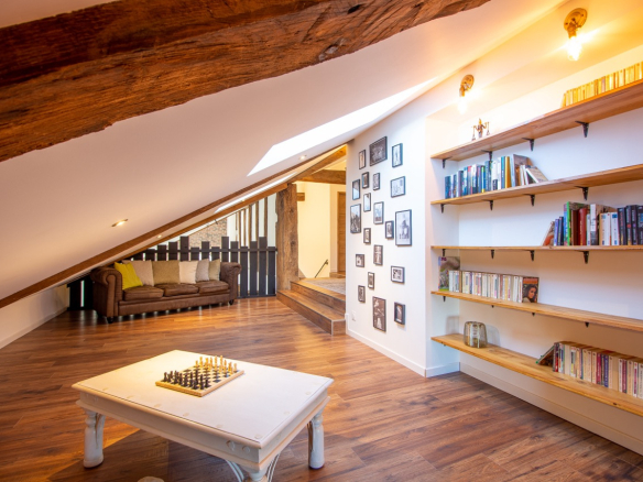 Upstairs, two more master suites and an office (or bedroom, depending on your needs) complete the layout, along with a charming library open to the living area.