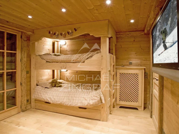 Michaël Zingraf Real Estate Megève presents this authentic 297 sq m (356 sq m total area) wooden chalet on Mont d'Arbois. Designed with authenticity and comfort in mind, it boasts exceptional panoramic views and a natural setting, all within easy reach of the slopes. The spacious living area comprises a lounge/dining room with a fireplace and a semi-open kitchen, extending onto beautiful outdoor terraces. Spread over three levels, the chalet offers six bedrooms, including a children's dormitory, each with its own bathroom or shower room, perfect for accommodating family and friends.