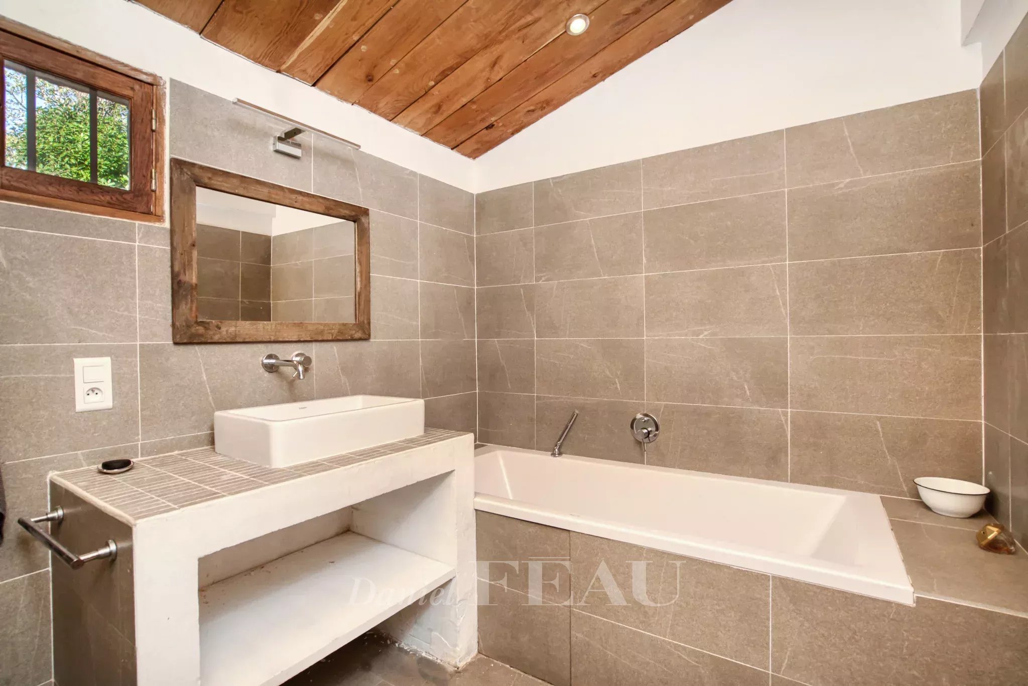Tastefully renovated by an architect and expandable up to 250m2, the property has retained its original character while incorporating a more modern design.