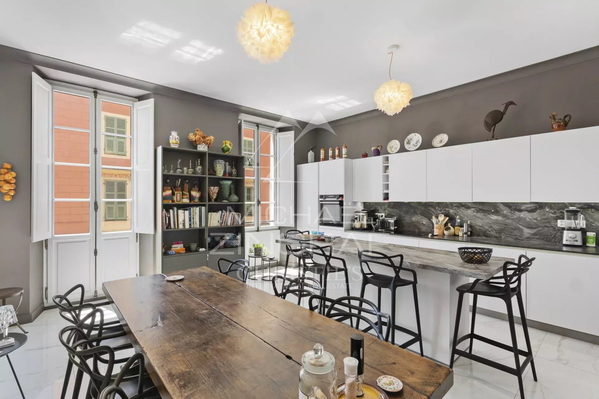 Michaël Zingraf Real Estate Nice presents to you a stone's throw from the famous Garibaldi square and Place du Pin, in a magnificent Nice building with elevator a splendid 4/5 room apartment with balcony and view of the port.