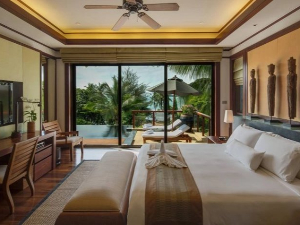 This beautiful apartment with a private pool boasts sea views and a gentle aspect on the northern coast. Within this 5-star luxury resort, the owner has access to all the amenities, including a 40-meter swimming pool, an 8-person jacuzzi, cabanas, a cocktail bar, a modern spa, a high-tech gym with personal trainers, a gourmet restaurant, and exclusive superyacht charters. The residence is within walking distance of Kamala Beach, arguably one of the most picturesque beaches in southern Thailand, set against a mountainous backdrop.
