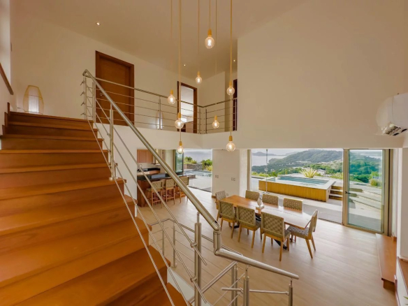Step out onto the expansive terrace, where a luxurious infinity pool invites you to relax while enjoying the mesmerizing views of the azure waters of the Gulf of Papagayo. Whether you're basking in the sun or dining al fresco with the breathtaking coastline as your backdrop, this open-air oasis offers a haven of peace and rejuvenation.
