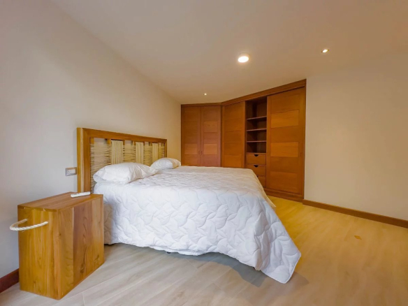 The second floor comprises two spacious bedrooms, a full bathroom, and a master bedroom and bathroom with breathtaking ocean views. On the ground floor, you'll find two additional bedrooms, each with its own bathroom, and a comfortable courtyard garden. Direct access to the garage provides ample storage space for your belongings.