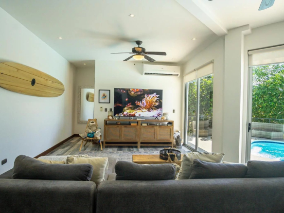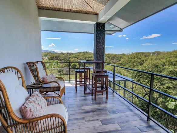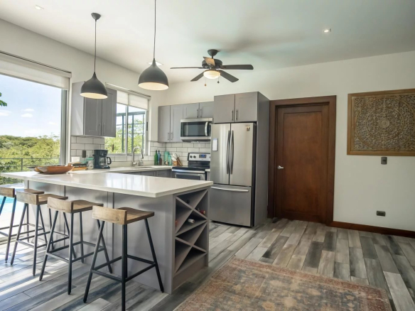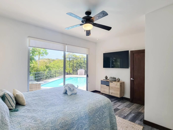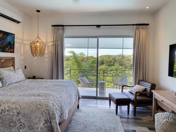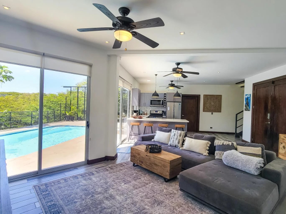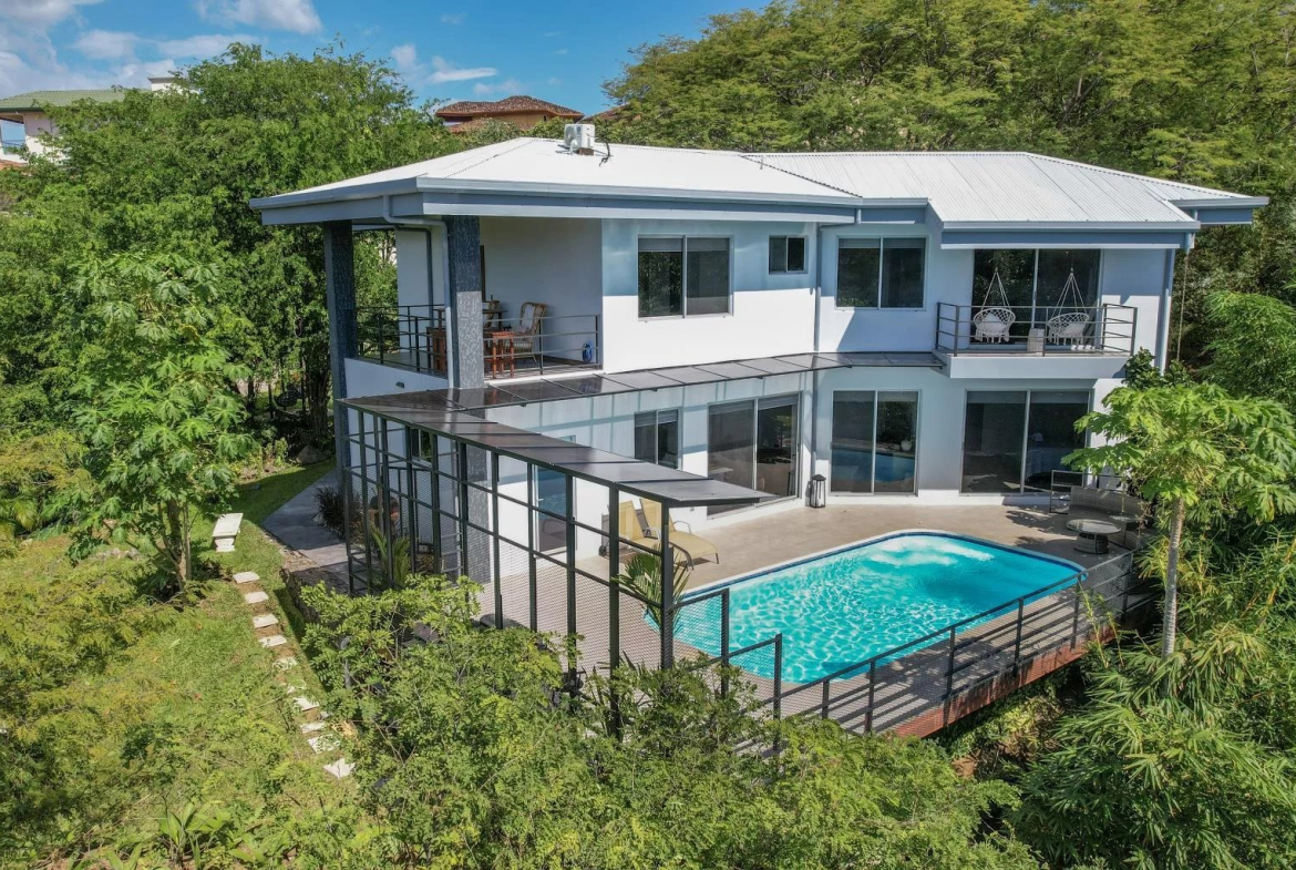 Move right into this beautiful, newly built, and tastefully furnished modern home in the gated Monte Paraiso development in Playa Hermosa, boasting partial ocean views and stunning valley vistas all around.
