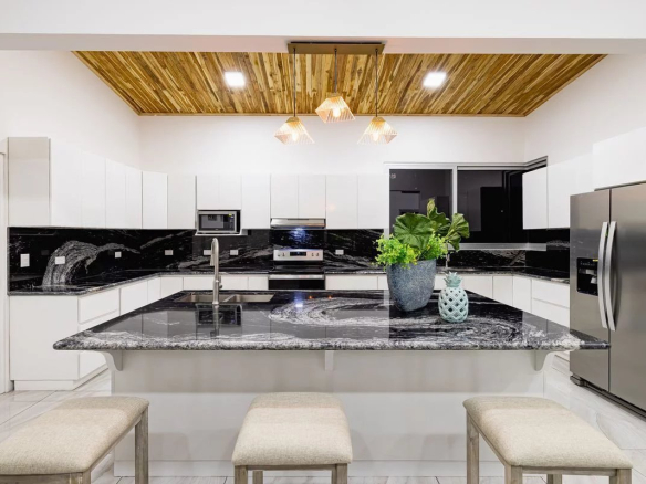 Casa Linda is a beautiful, modern home nestled on a hillside in a gated community in Hermosa Heights. This newly built house features a large, spacious living area and an expansive outdoor living space. Fully furnished and priced for a quick sale, it's a real bargain for such a stunning property.