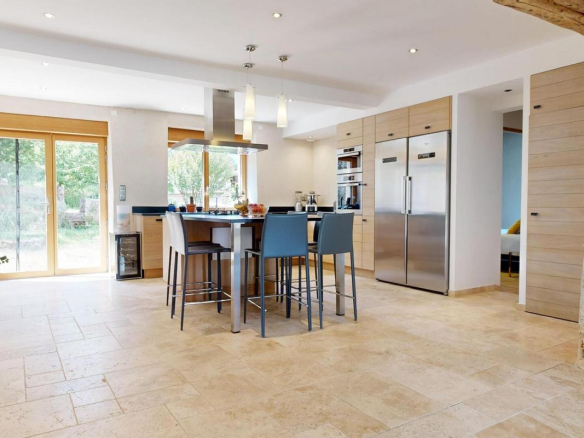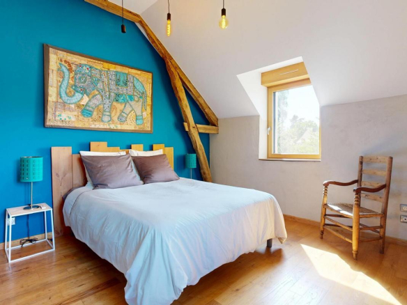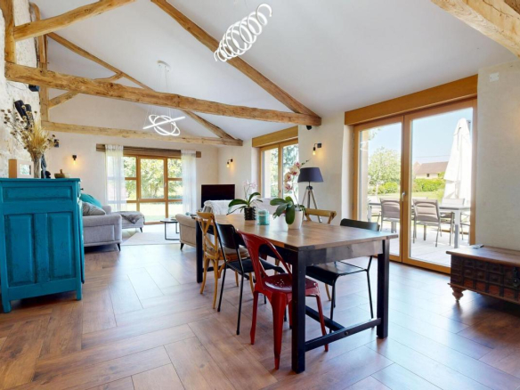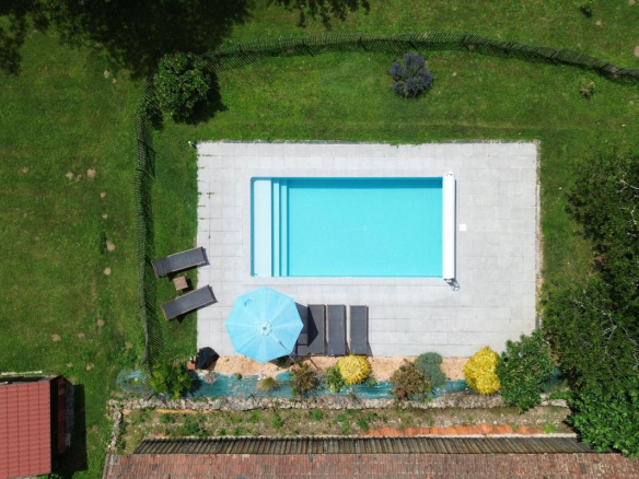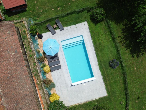 Nestled in a peaceful hamlet, this property comprises a main house, meticulously renovated in 2017, and a beautiful 17th-century stone cottage, blending old-world charm with modern comforts. The property has been renovated using high-quality materials, giving it a contemporary character. Nearby, hiking trails invite exploration of the surrounding countryside, while local shops and essential services are just a short drive away. This location offers the best of both worlds: the tranquility of the countryside and the convenience of urban amenities. The main house features a bright, 60m² living room where the pellet-fired central heating system distributes heat through the floor and, surprisingly, through the walls. It also includes four bedrooms, one of which is on the ground floor. The cottage, designed for comfortable and convivial stays, offers a shaded terrace and three bedrooms. The swimming pool invites you to relax and refresh. A large and pleasant garden completes the property. Presence of a well.