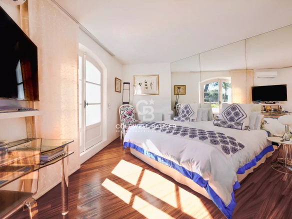 Facing southeast and in absolute tranquility, it offers three levels: a large, bright, cathedral-ceilinged living room, dining room, kitchen, and a mezzanine converted into a library. A master bedroom with en-suite bathroom and terrace access, a dressing room, and three further bedrooms with en-suite bathrooms. Swimming pool and pool house. Enclosed garage.