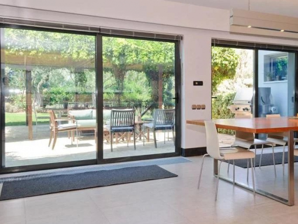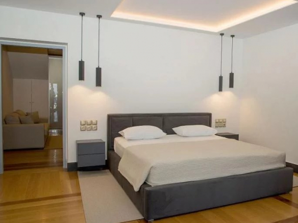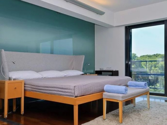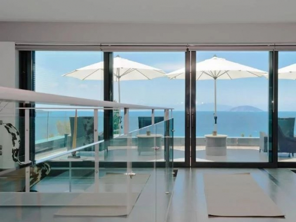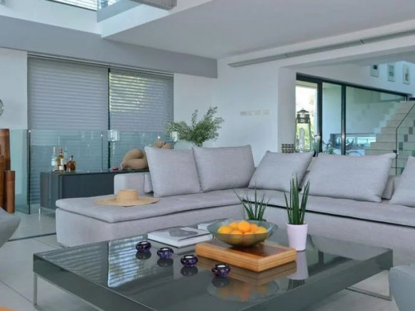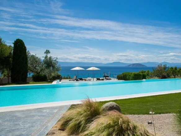 Located in Porto Heli, a stunning area in the southern Peloponnese, this villa is surrounded by beautiful beaches and picturesque landscapes. Featuring a masterpiece of modern architecture and meticulously planned landscaping, it offers bright and airy outdoor living spaces. Floor-to-ceiling windows frame breathtaking views of secluded islands amidst the endless waters of the Aegean Sea and the verdant hills of the Peloponnese.
