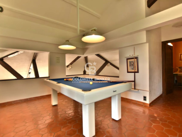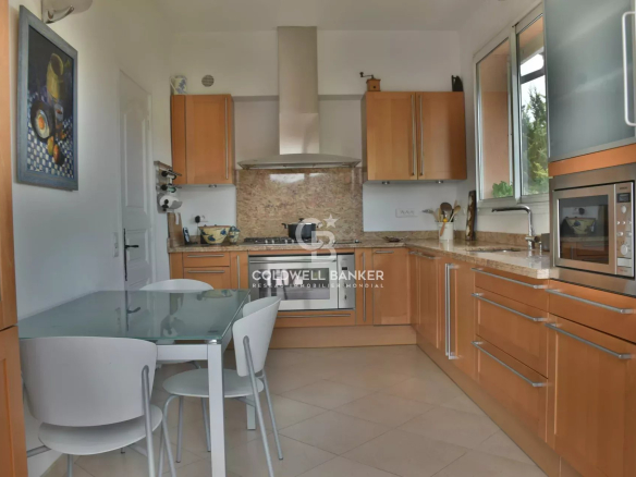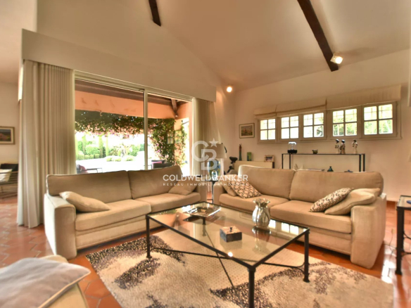 Built on two levels, this comfortable family home comprises: a welcoming entrance hall with cloakroom, guest toilet, living room with fireplace and high ceilings, dining room, large fully equipped kitchen with lovely views of the hills, all opening through French doors onto a covered terrace or garden.