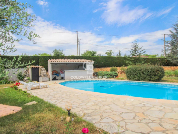 Located in a quiet area of St Césaire sur Siagne, 15 minutes from Grasse, close to amenities and schools, this charming 162 sq m (1,745 sq ft) house, built on a 1,801 sq m (19,500 sq ft) plot, features a free-form swimming pool and pool house. The ground floor comprises a living room with a fireplace, a dining room, a fully equipped open-plan kitchen, and a large office.