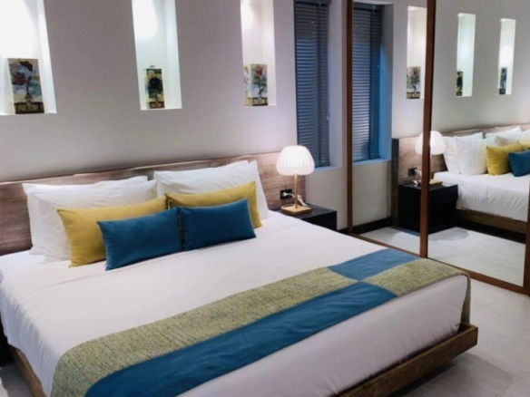 With four air-conditioned bedrooms with private bathrooms, an additional staff bedroom and a massage room.
