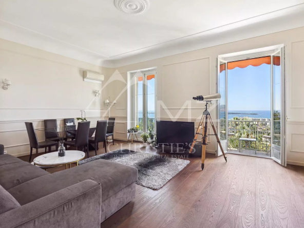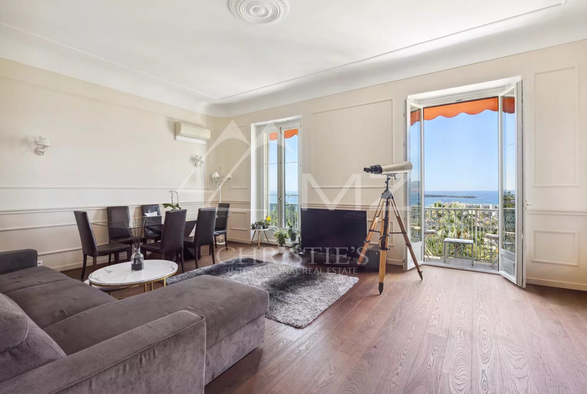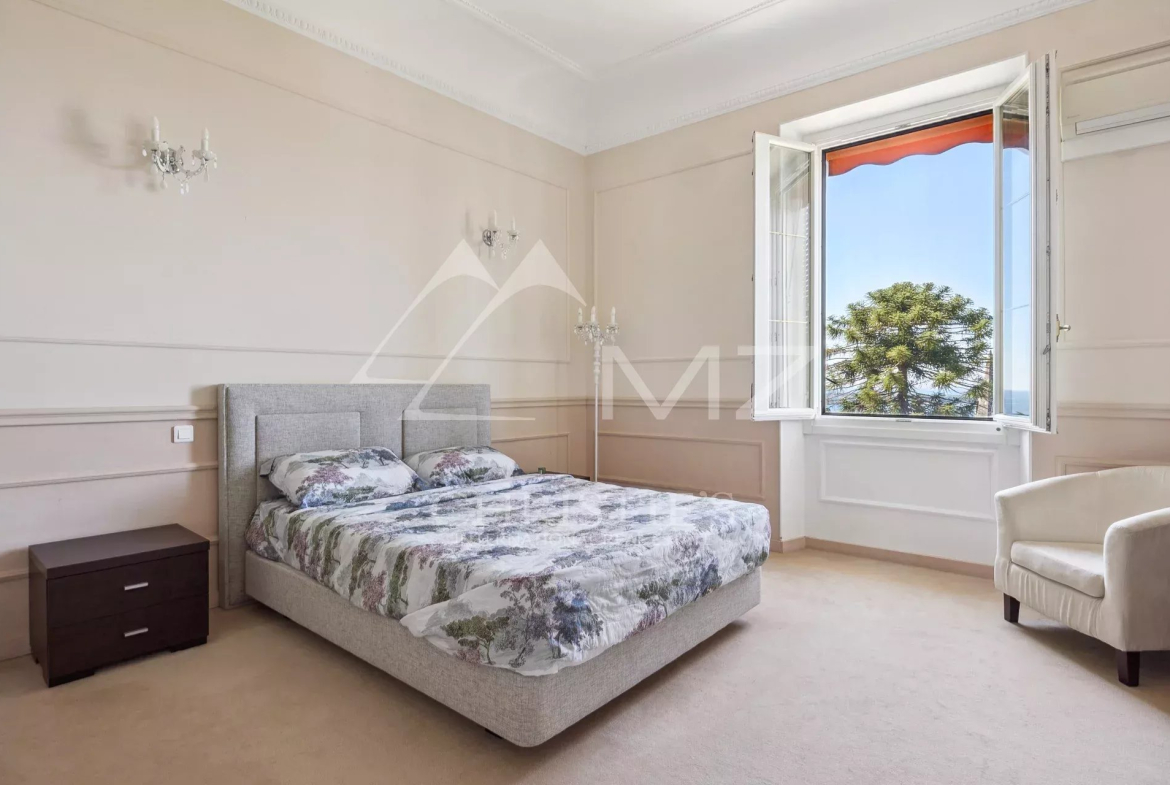 Nestled in the heart of Avenue du Roi Albert Premier, this magnificent 120 m² bourgeois apartment stands out for its harmonious blend of contemporary and old. Located on the 3rd floor of a prestigious residence with caretaker and park, it benefits from a breathtaking view of the Mediterranean Sea and the Lérins Islands, without vis-à-vis.