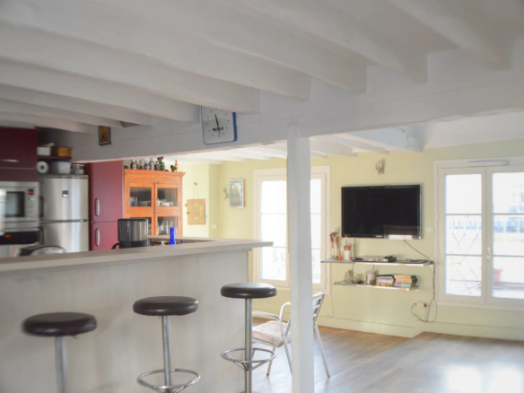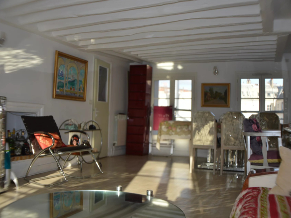 In the 10th arrondissement of Paris, a charming duplex in a small, 22-unit building. Offering 128m² of living space (84m² Carrez Law), it is located on the 5th floor (no elevator) of a beautiful 1820 Parisian stone townhouse.