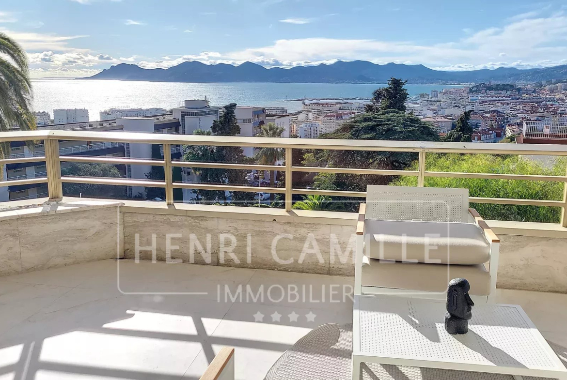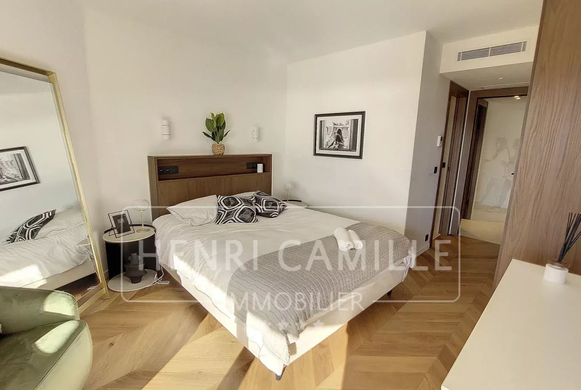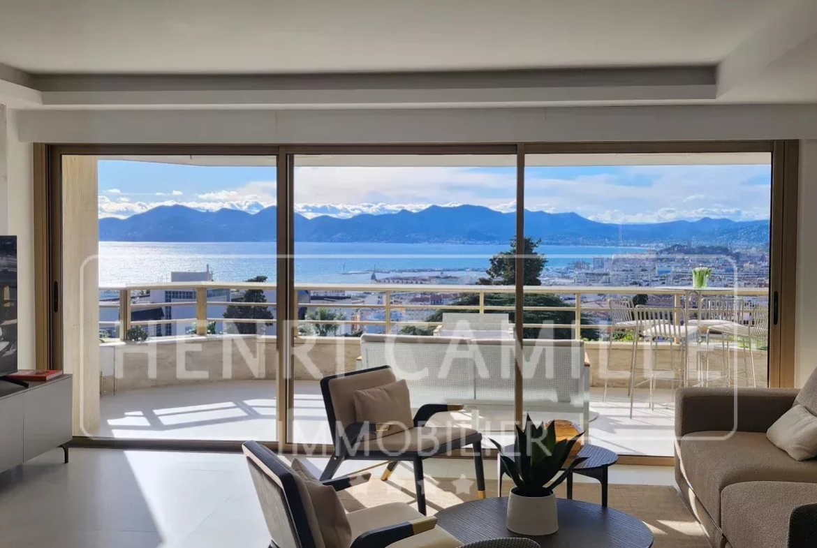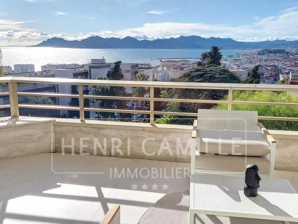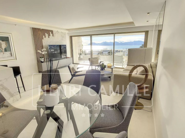 In a secure luxury residence with park and swimming pool, located between Montfleury and California, exceptional 100 m² apartment with panoramic sea view! It is composed of a living room/kitchen of 40 m², 3 en-suite bedrooms, a terrace of 26 m². The apartment is completely renovated. Underground parking