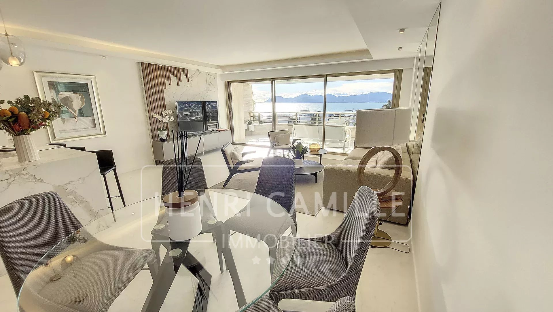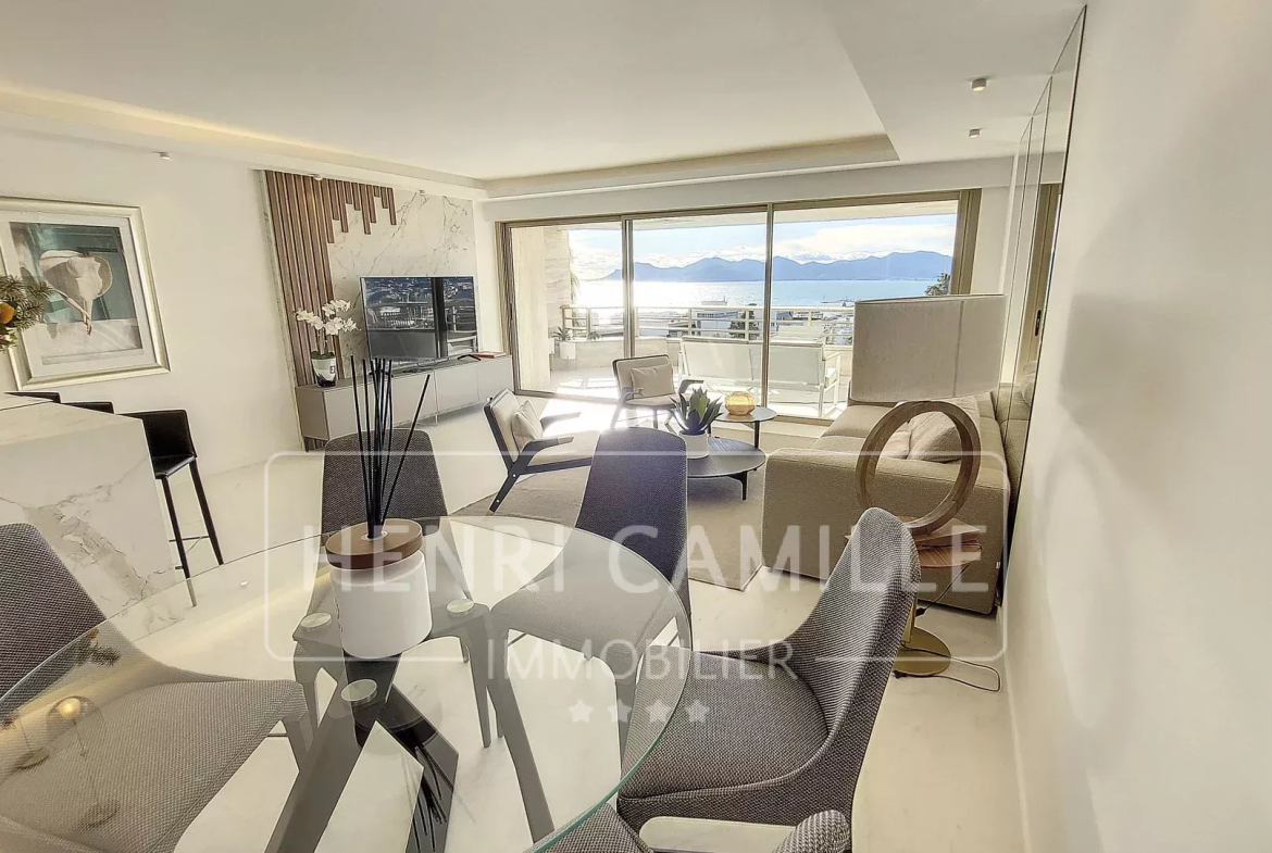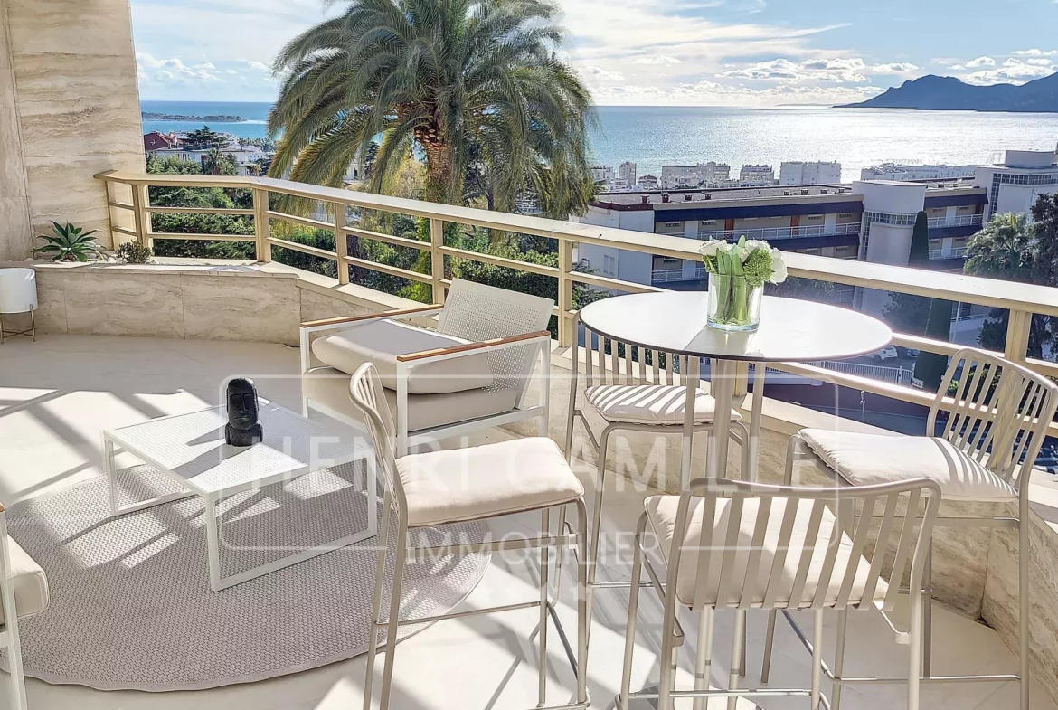 In a secure luxury residence with park and swimming pool, located between Montfleury and California, exceptional 100 m² apartment with panoramic sea view! It is composed of a living room/kitchen of 40 m², 3 en-suite bedrooms, a terrace of 26 m². The apartment is completely renovated. Underground parking