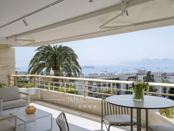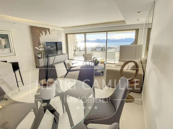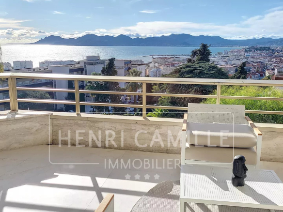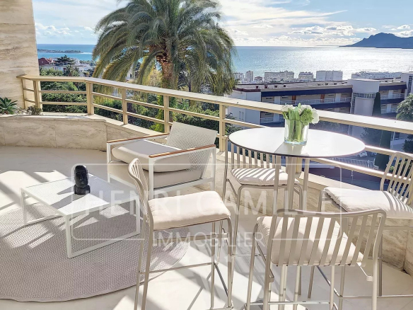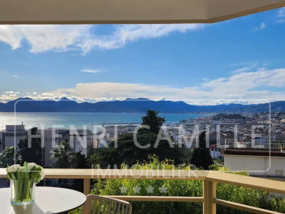 In a secure, luxury residence with a park and swimming pool, located between Montfleury and La Californie, this exceptional 100 sq m apartment boasts panoramic sea views! It comprises a 40 sq m living room/kitchen, three en-suite bedrooms, and a 26 sq m terrace. The apartment has been completely renovated. Underground parking is included
